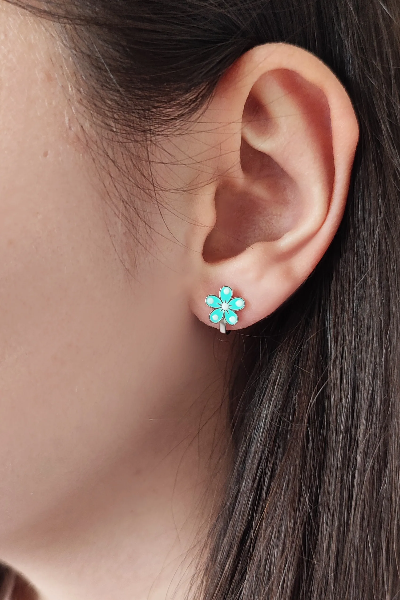 - Mavi Mineli Çiçek Tasarım 925 Ayar Gümüş Kız Çocuk Küpe