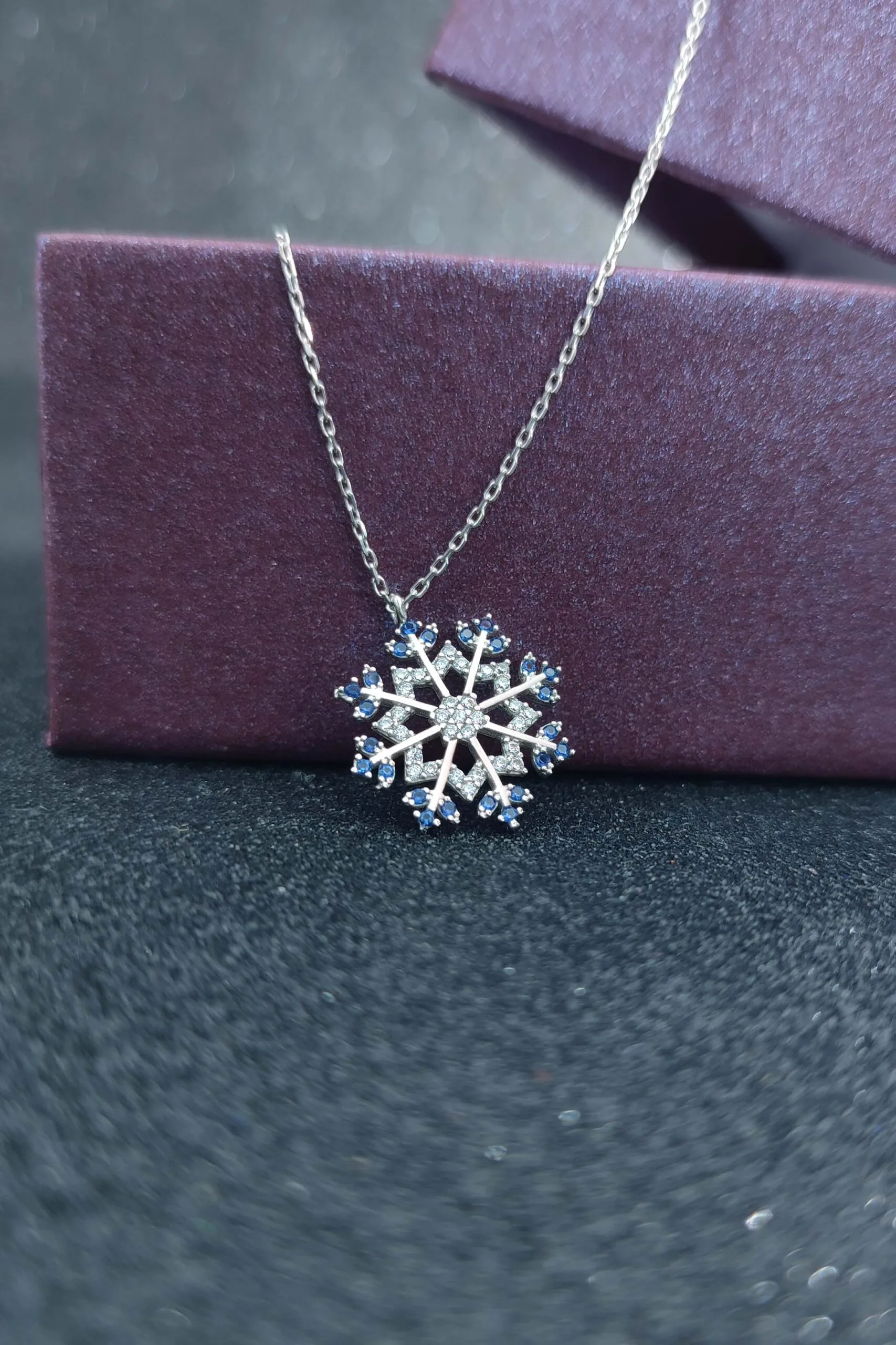 Mavi Renk Geçişli Kar Tanesi 925 Ayar Gümüş Kadın Kolye