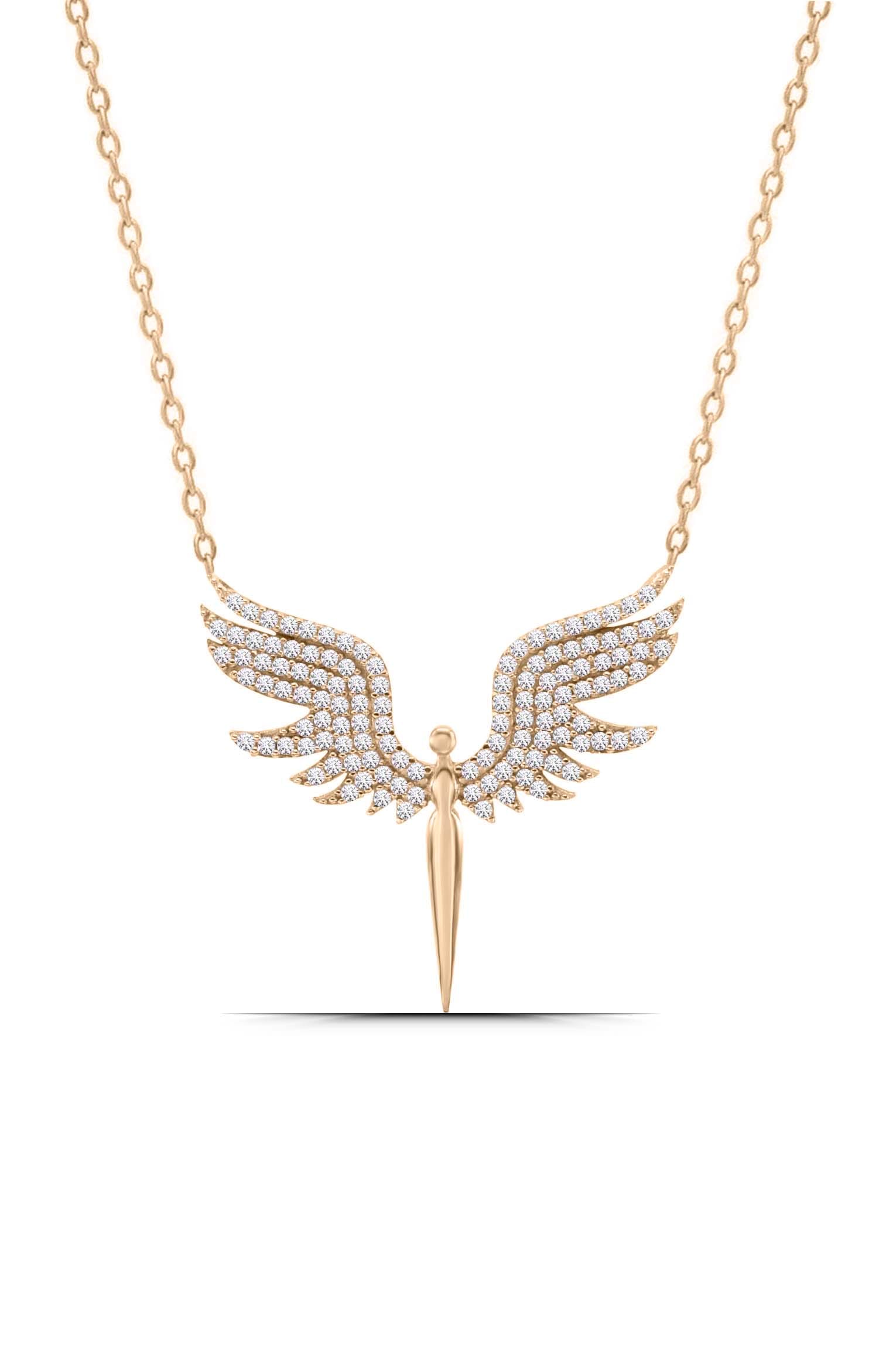 - Mikail Meleği 925 Ayar Gümüş Kadın Beyaz Taşlı Rose Kolye