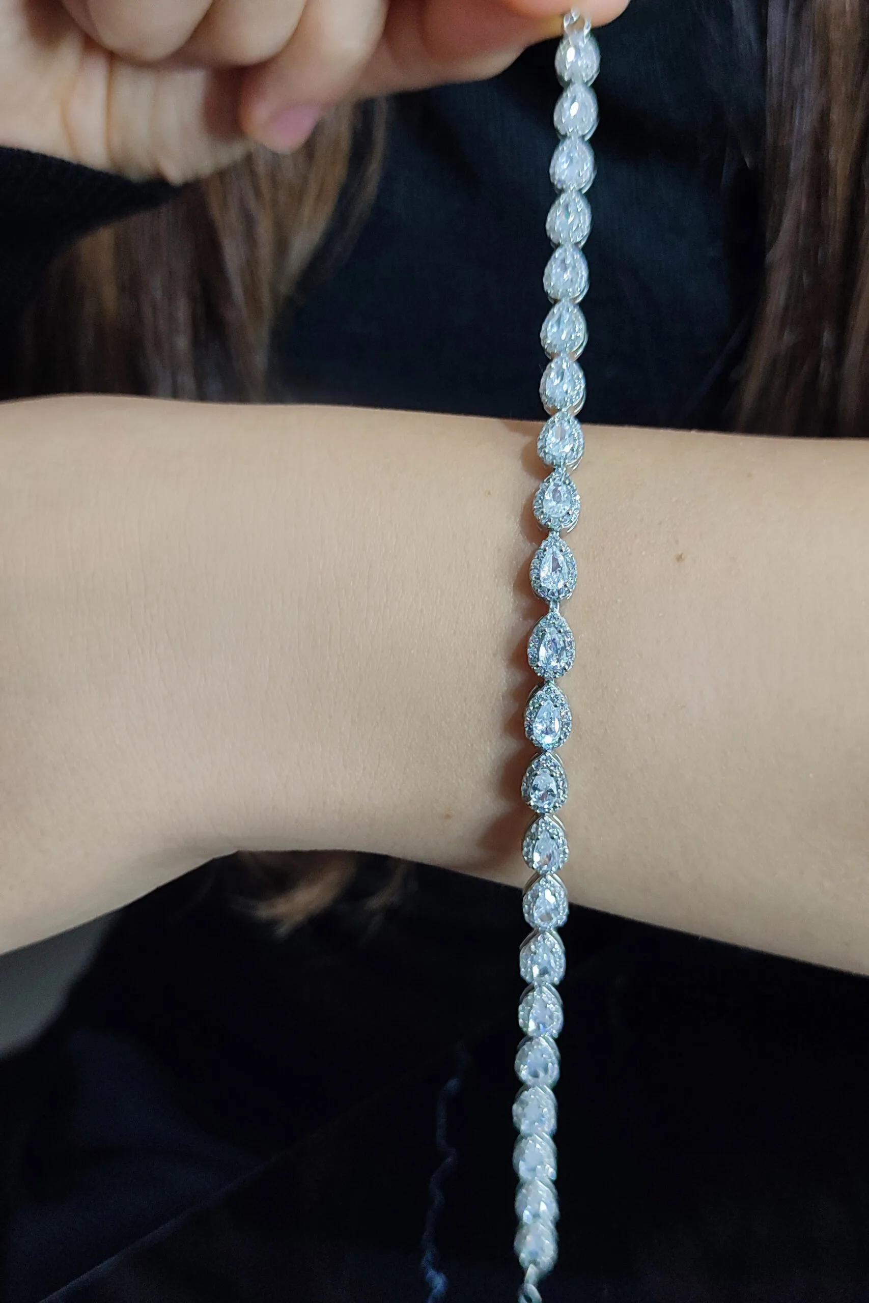 Montür Kesimli Damla Form Kadın 925 Ayar Gümüş Bileklik