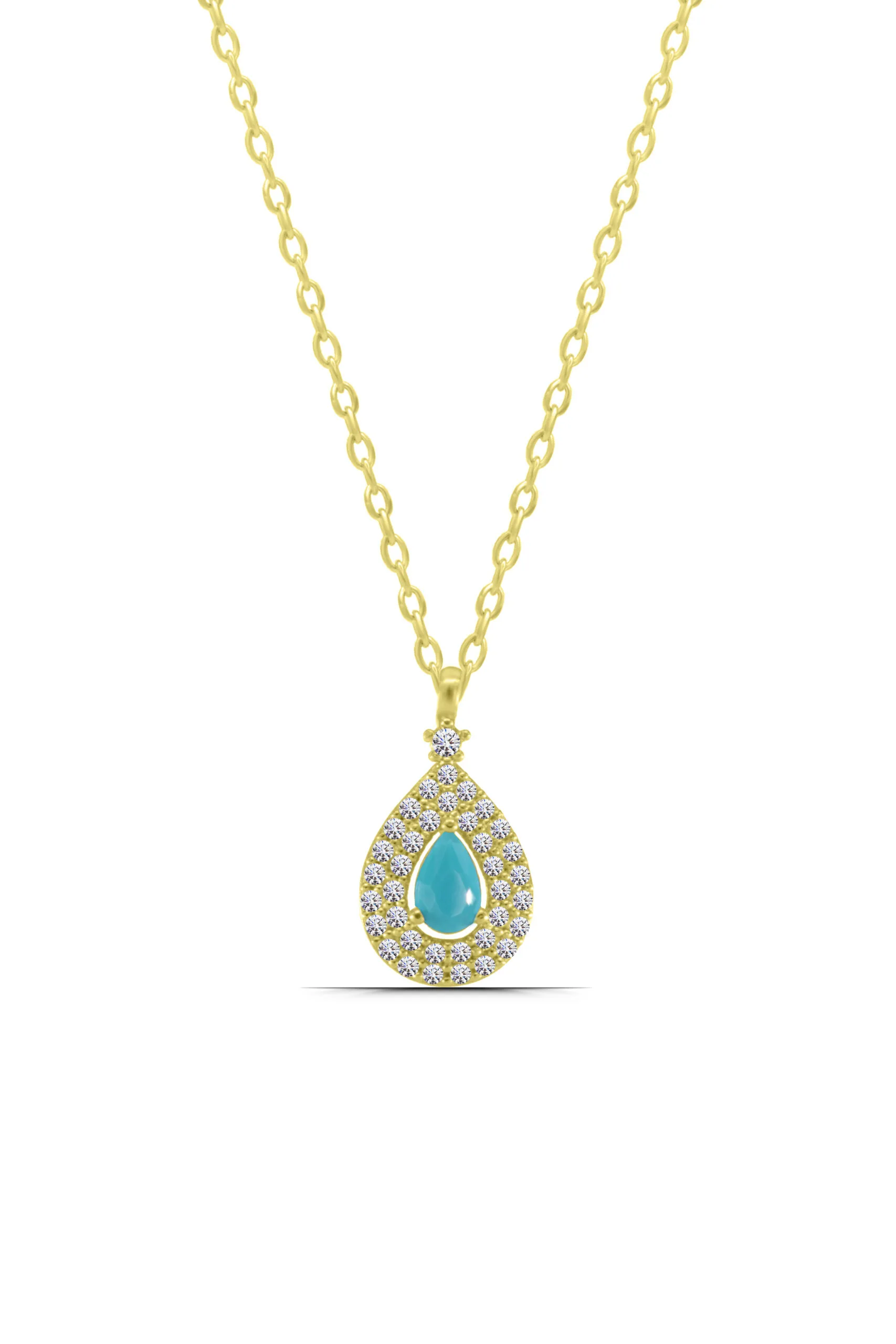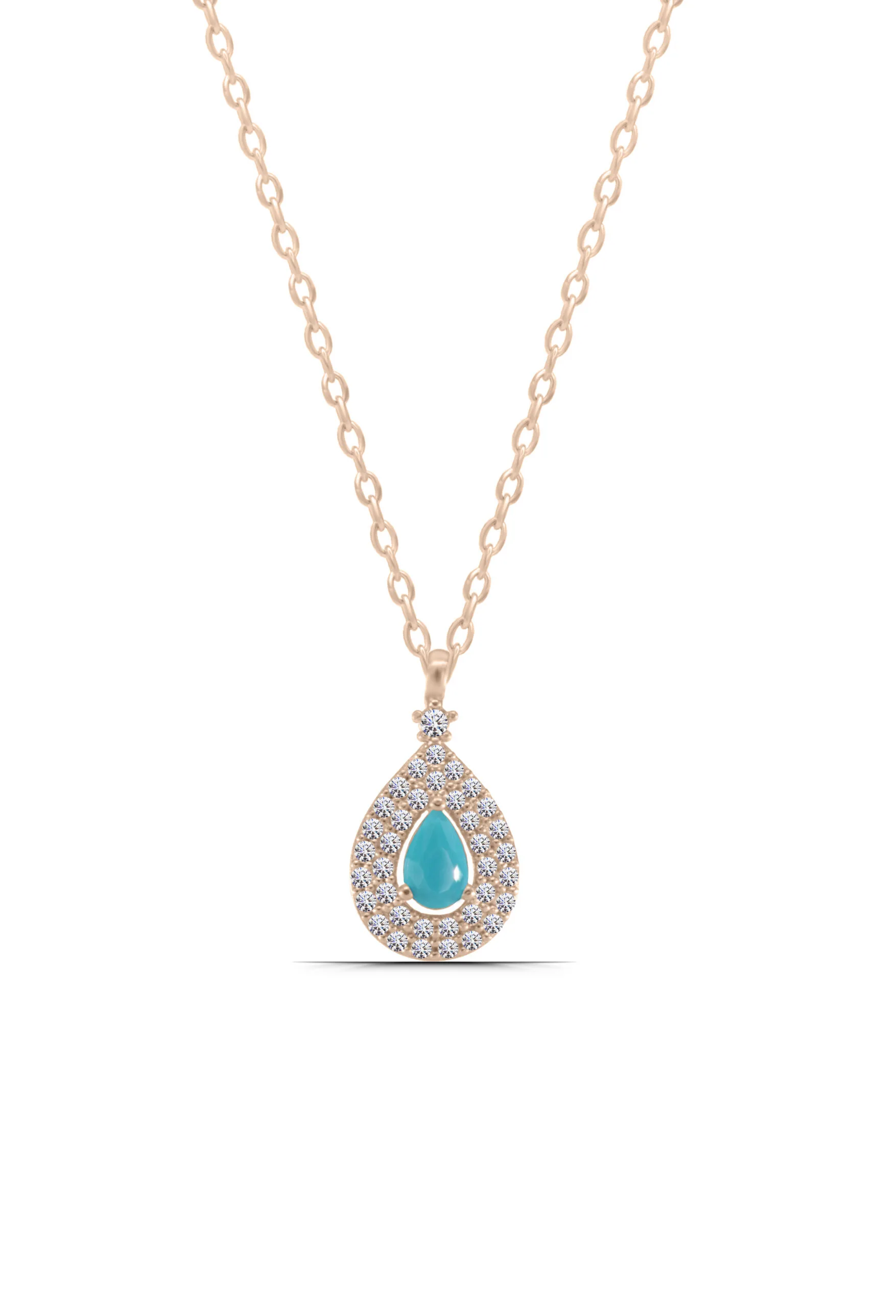 Montürlü Turkuaz Damla Taşlı 925 Ayar Gümüş Kadın Kolye