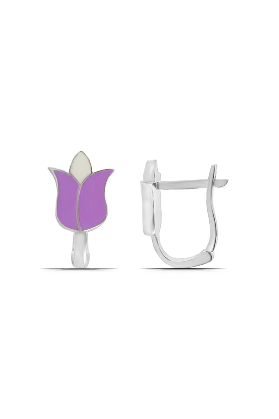 Mor Lale Mineli 925 Ayar Gümüş Çocuk Küpe