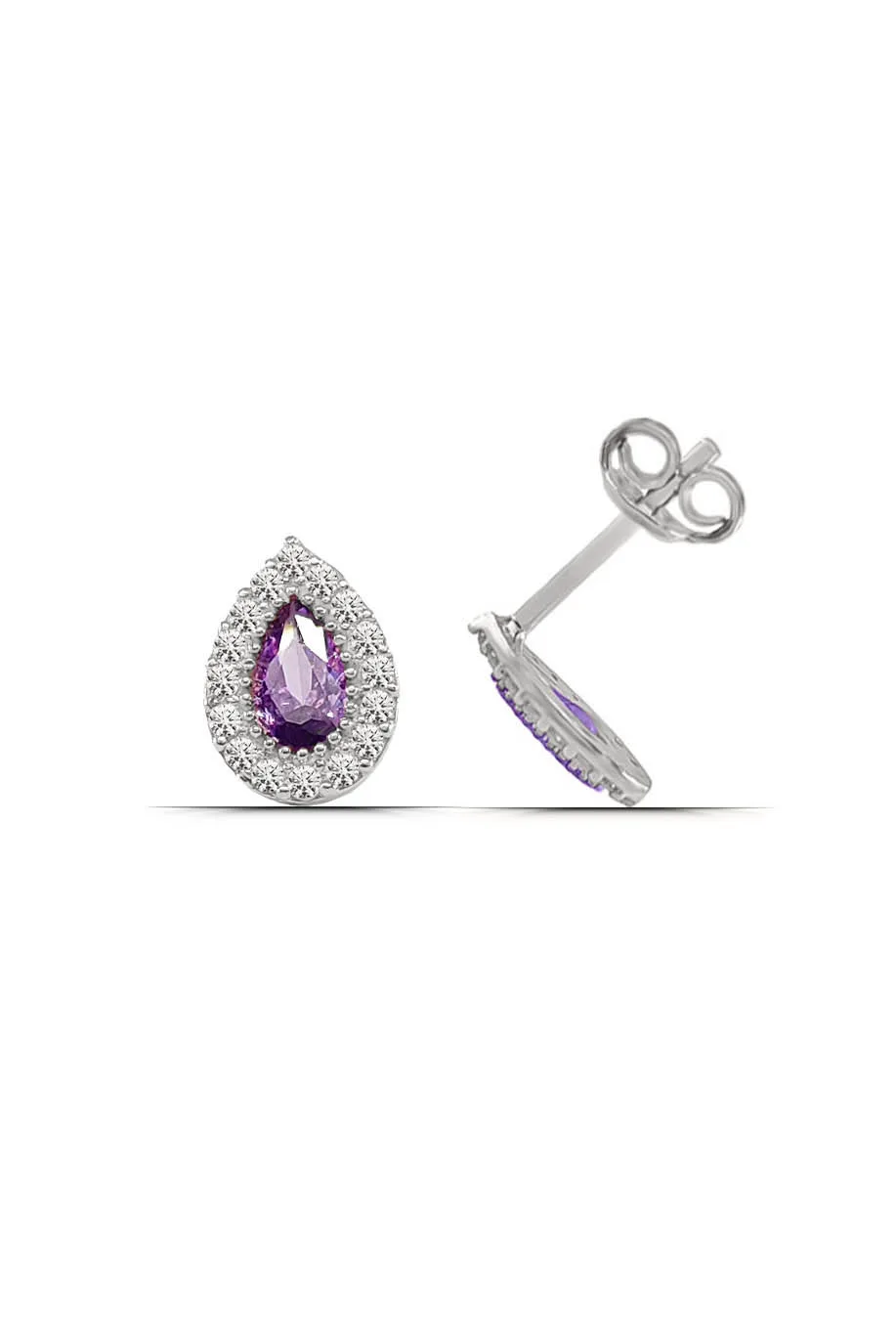 - Mor Renk Damla Montür Taşlı 925 ayar Gümüş Rodyum Küpe