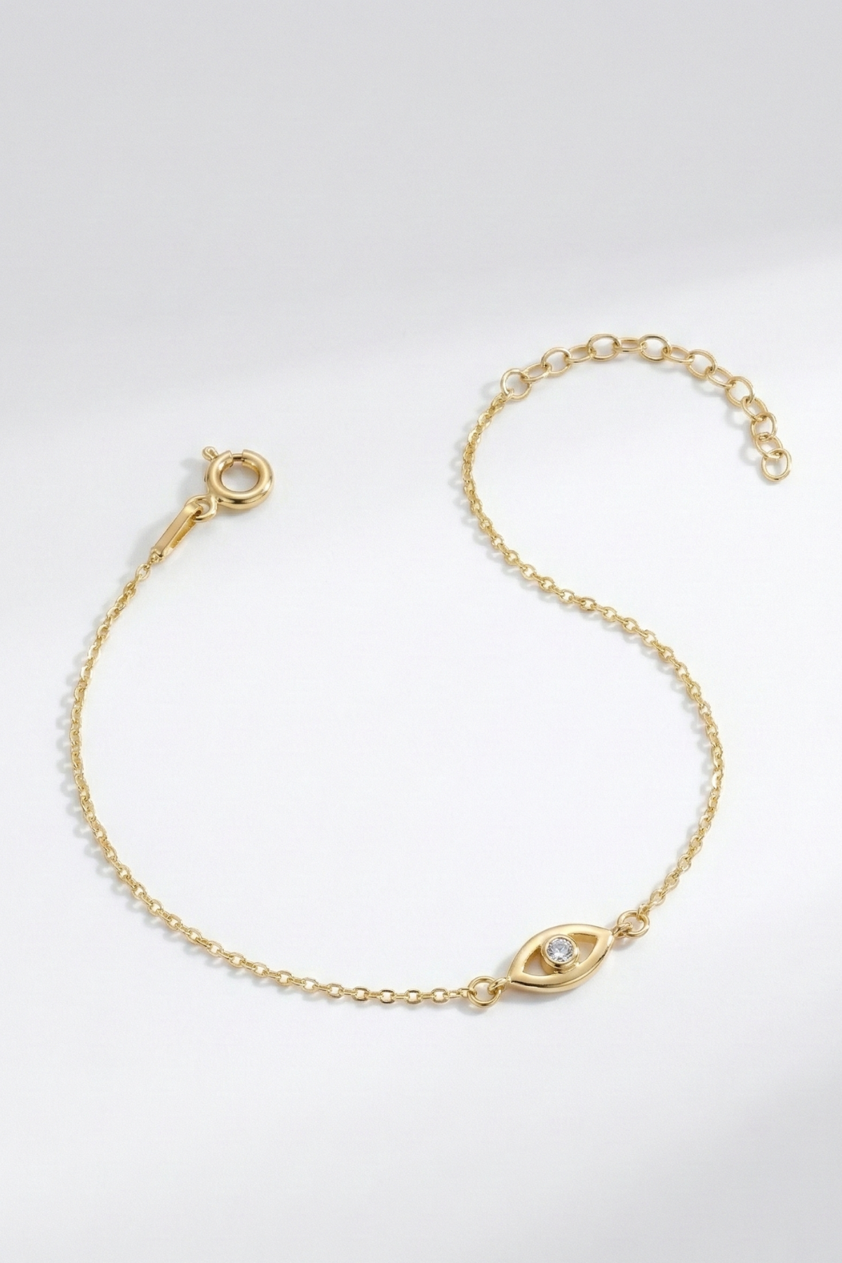 Zarafet ve anlamın bir araya geldiği bu Nazar Göz Minimal 925 Ayar Gümüş Kadın Ayarlanabilir Bileklik, günlük stiline şık bir dokunuş katmak isteyenler için özel olarak tasarlandı. Minimal formdaki göz motifinin merkezinde yer alan parlak taş, ışığı kusursuz şekilde yansıtarak bilek üzerinde dikkat çekici fakat son derece zarif bir görünüm oluşturur.