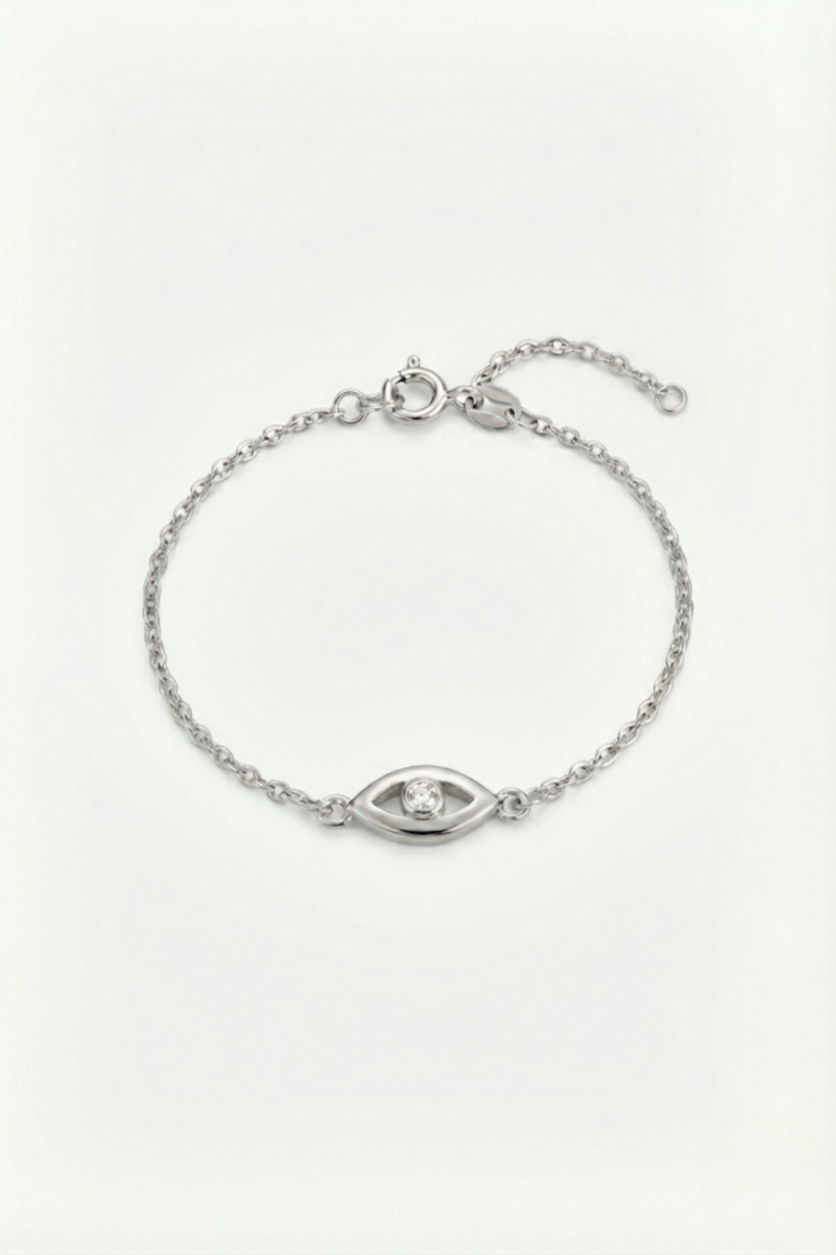 Nazar Göz Minimal 925 Ayar Gümüş Kadın Ayarlanabilir Bileklik