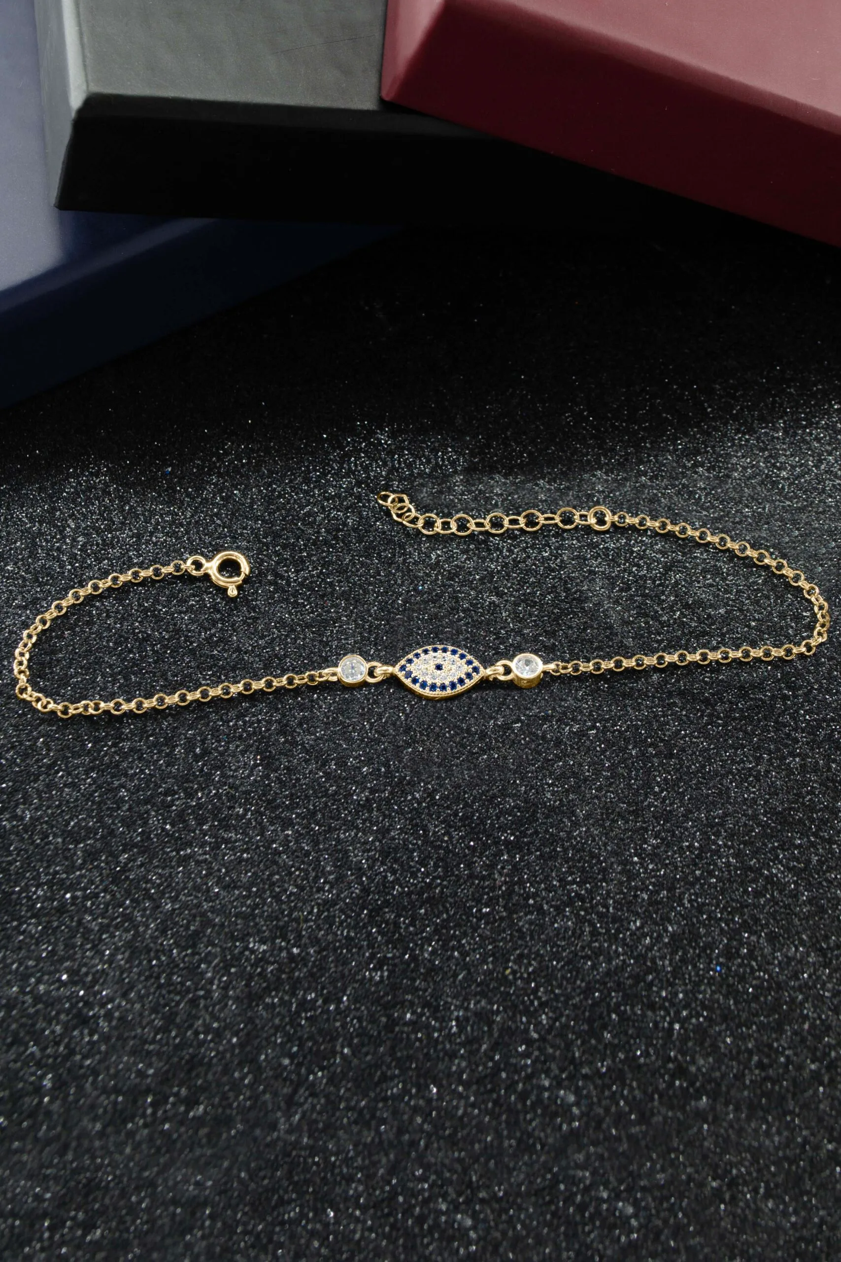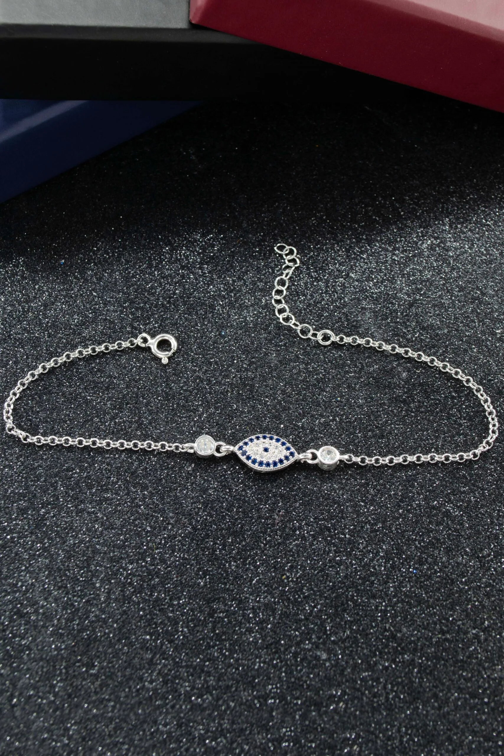 Nazar İşlemeli Göz 925 Ayar Gümüş Kadın Ayarlanabilir Bileklik