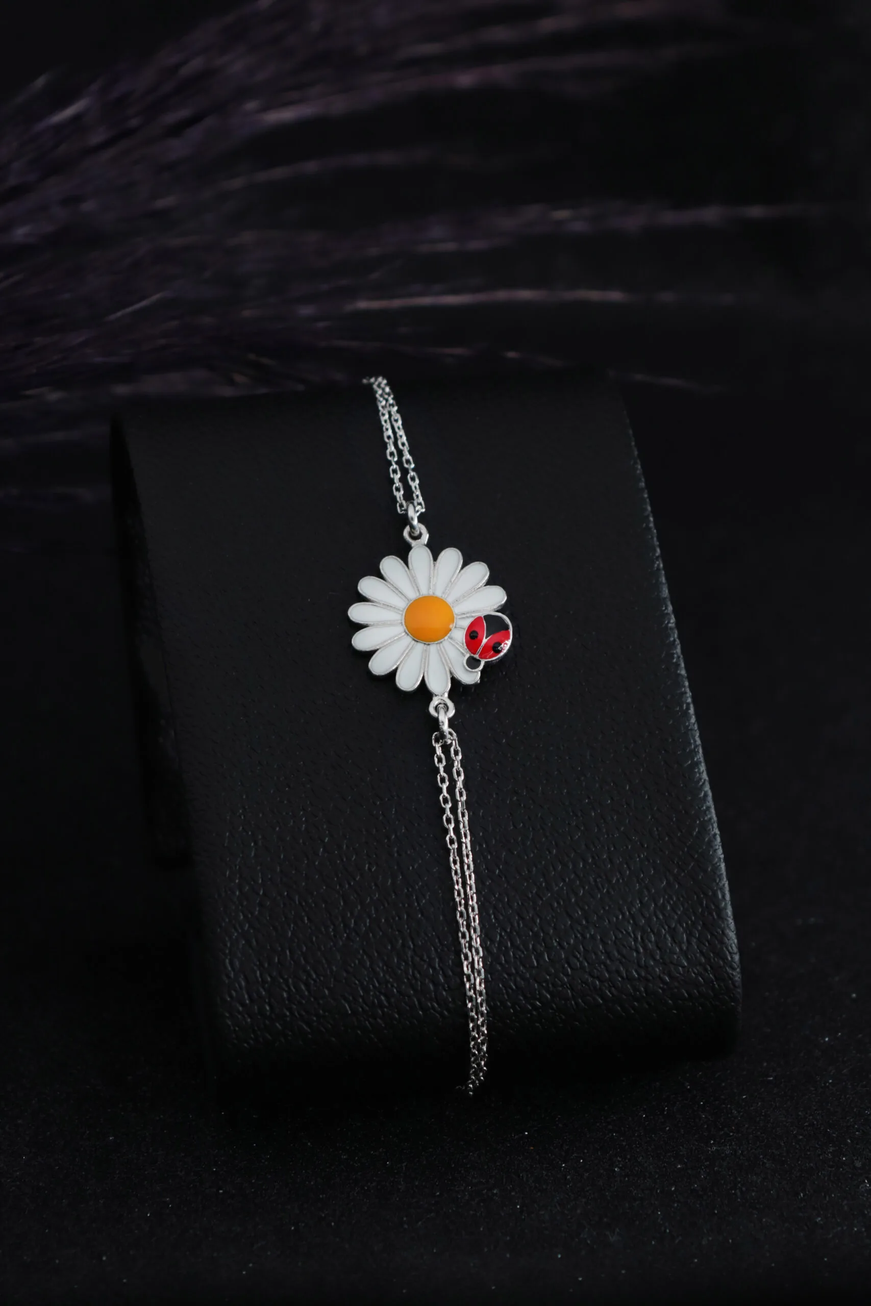 Papatya ve Uğur Böceği 925 Ayar Gümüş Kadın Bileklik