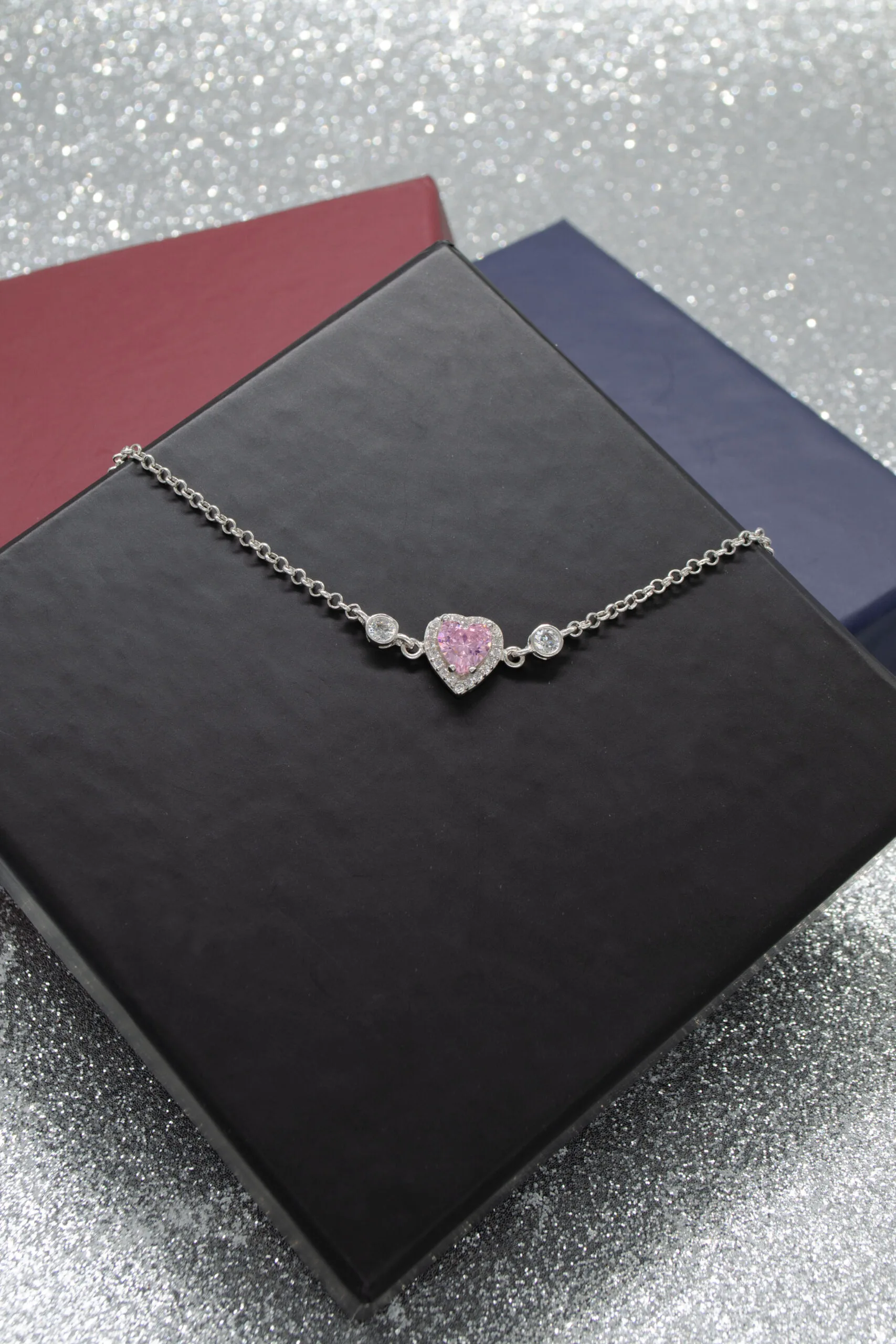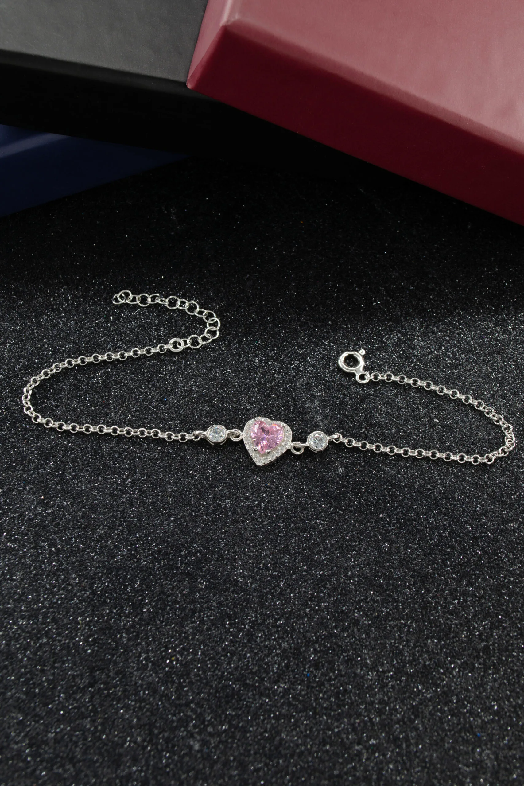 Pembe Kalp Tasarımlı 925 Ayar Gümüş Kadın Ayarlanabilir Bileklik