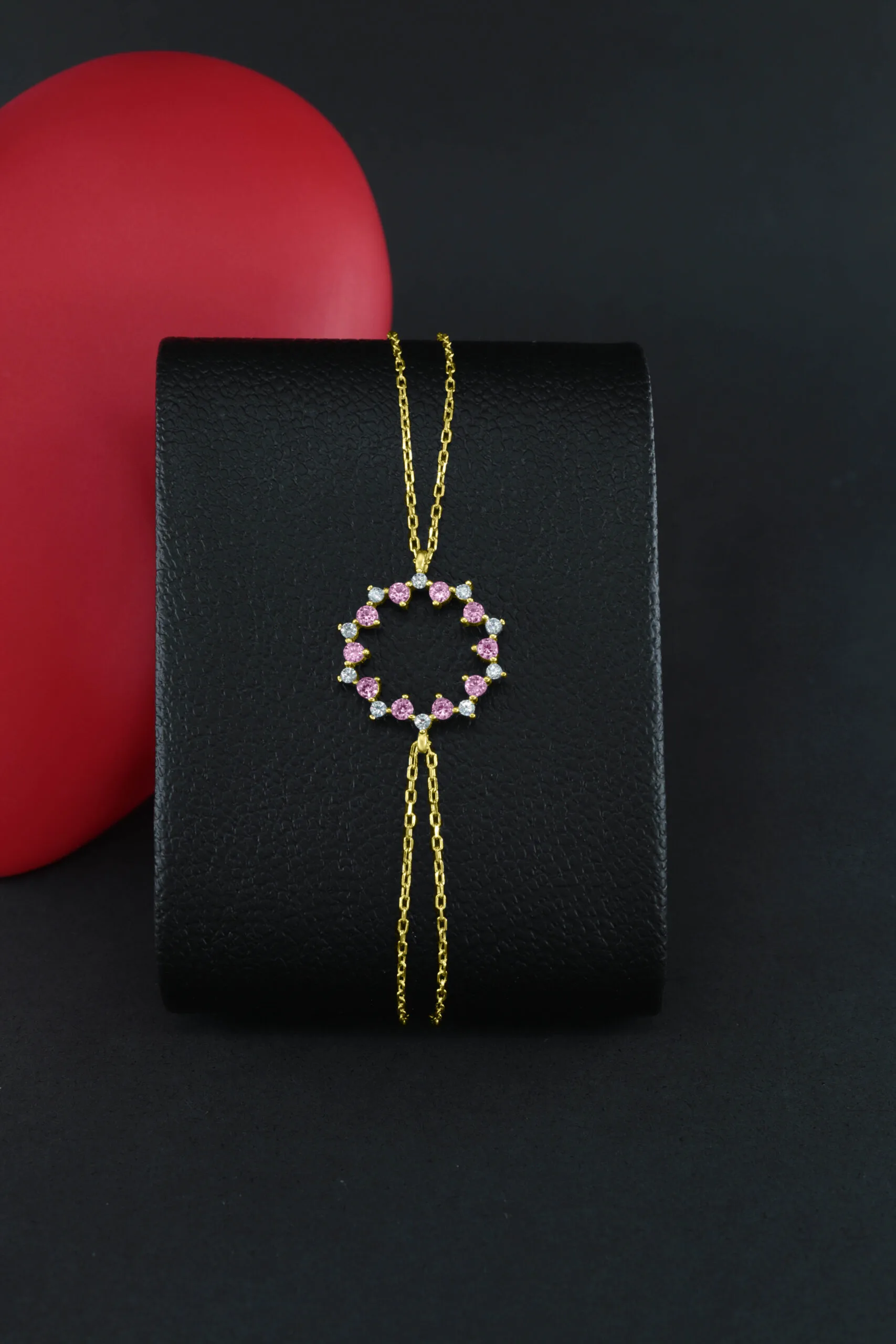 Pembe Manolya 925 Ayar Gümüş Kadın Ayarlanabilir Bileklik