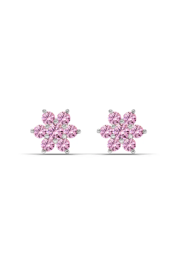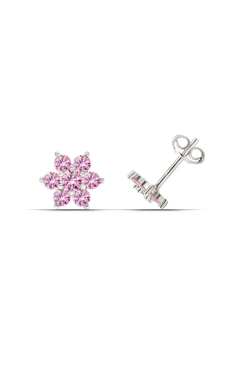 - Pembe Zirkon Taşlı Çiçek Tasarım 925 Ayar Gümüş Küpe
