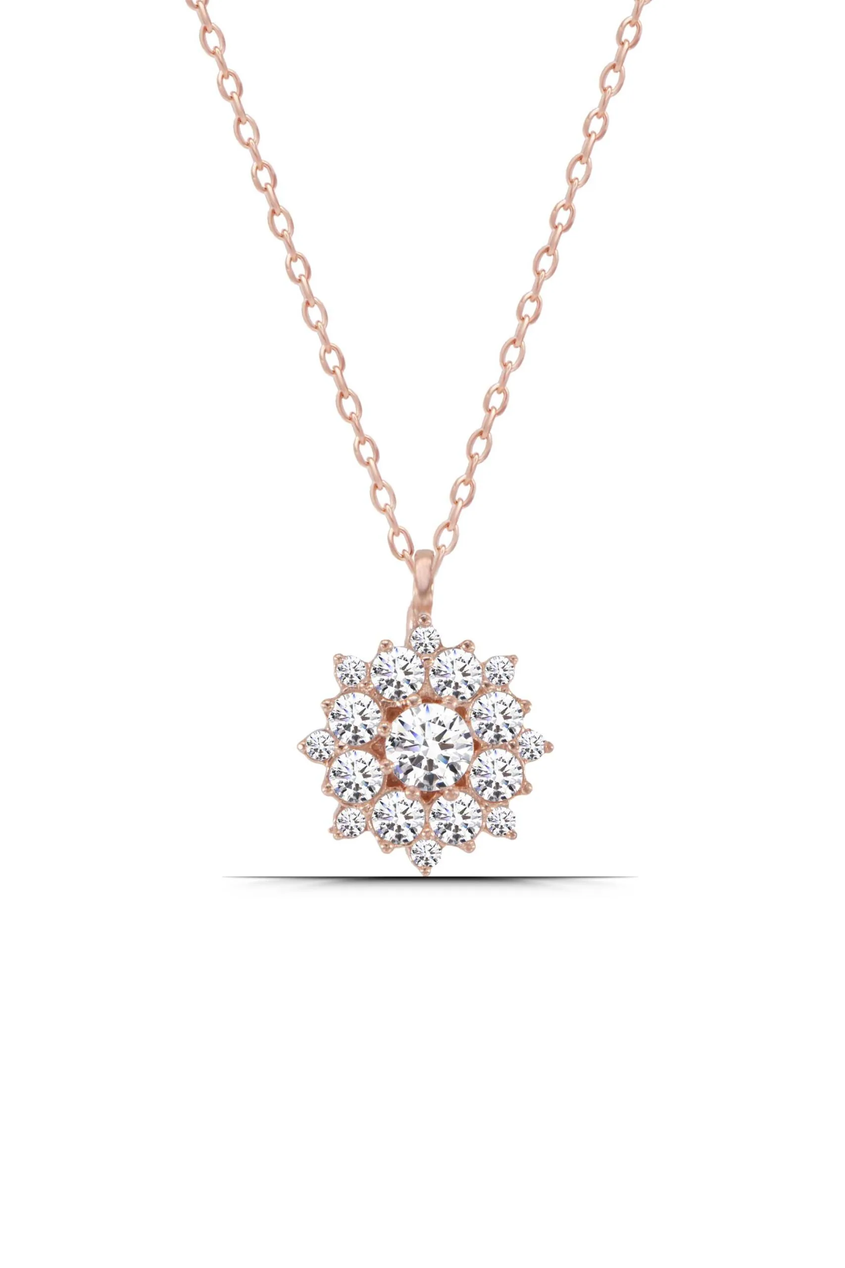 Pırlanta Montür Işıltılı Kadın 925 Ayar Gümüş Rose Kolye