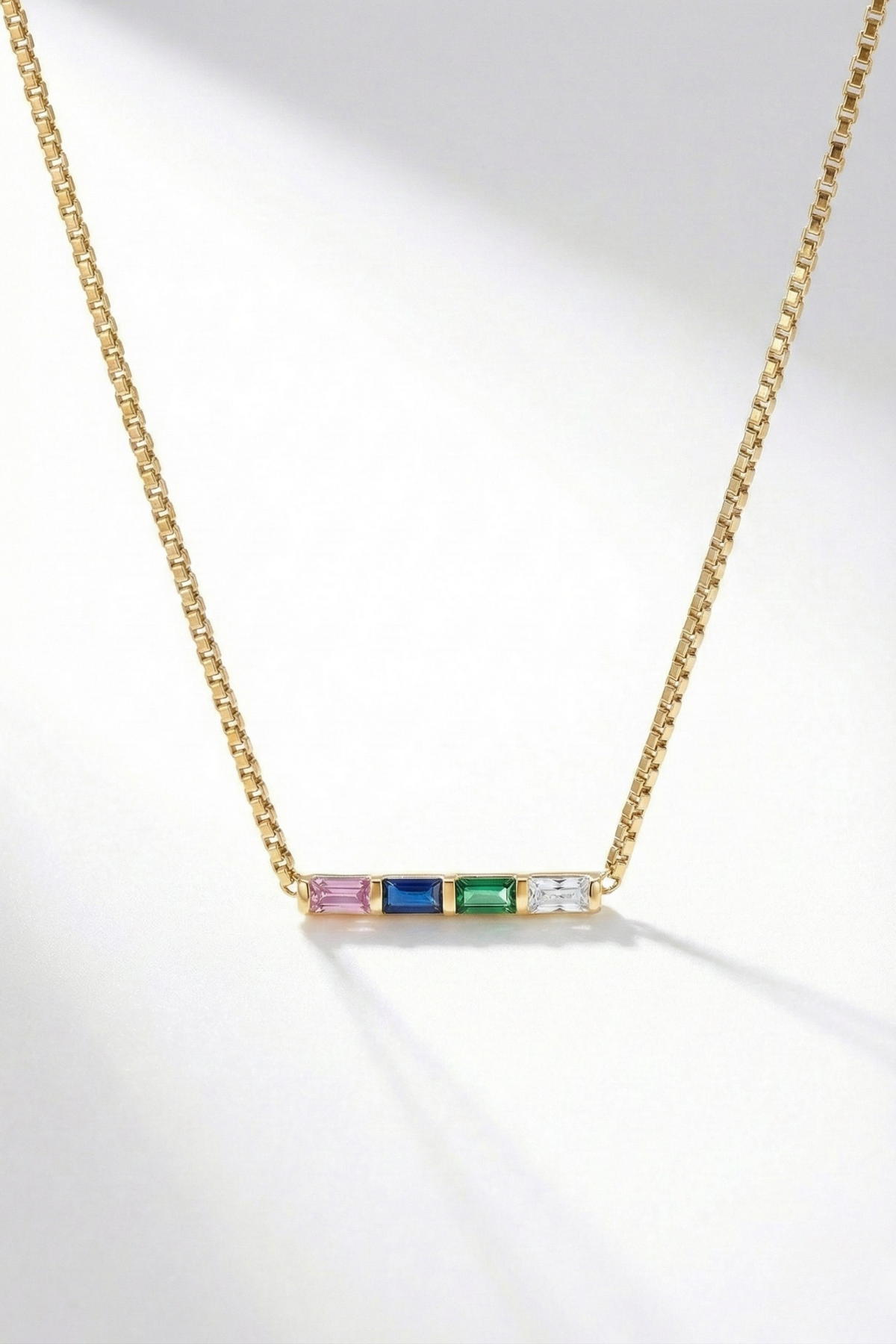 Renkli Baget Taşlı Kutu Zincir 925 Ayar Gümüş Kadın Minimal Kolye
