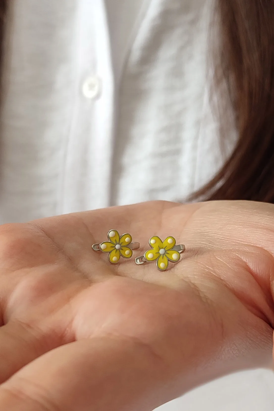 - Sarı Mineli Çiçek Tasarım 925 Ayar Gümüş Kız Çocuk Küpe