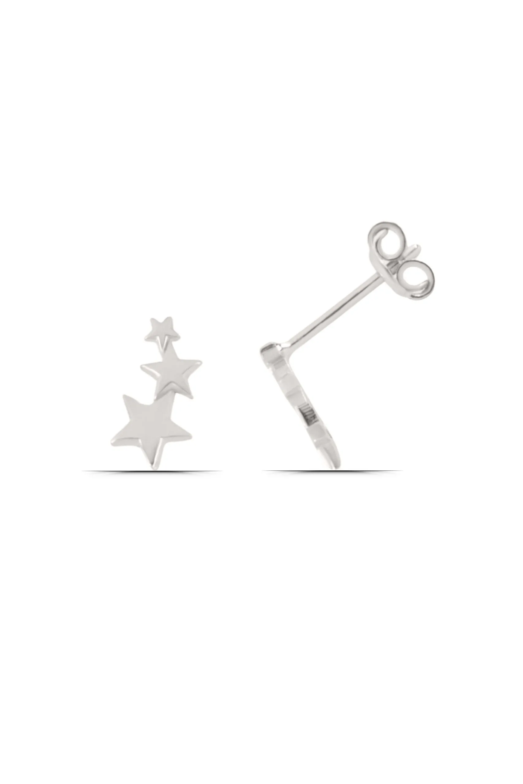 Sıralı Yıldız Tasarım 925 Ayar Gümüş Kadın Minimal Küpe