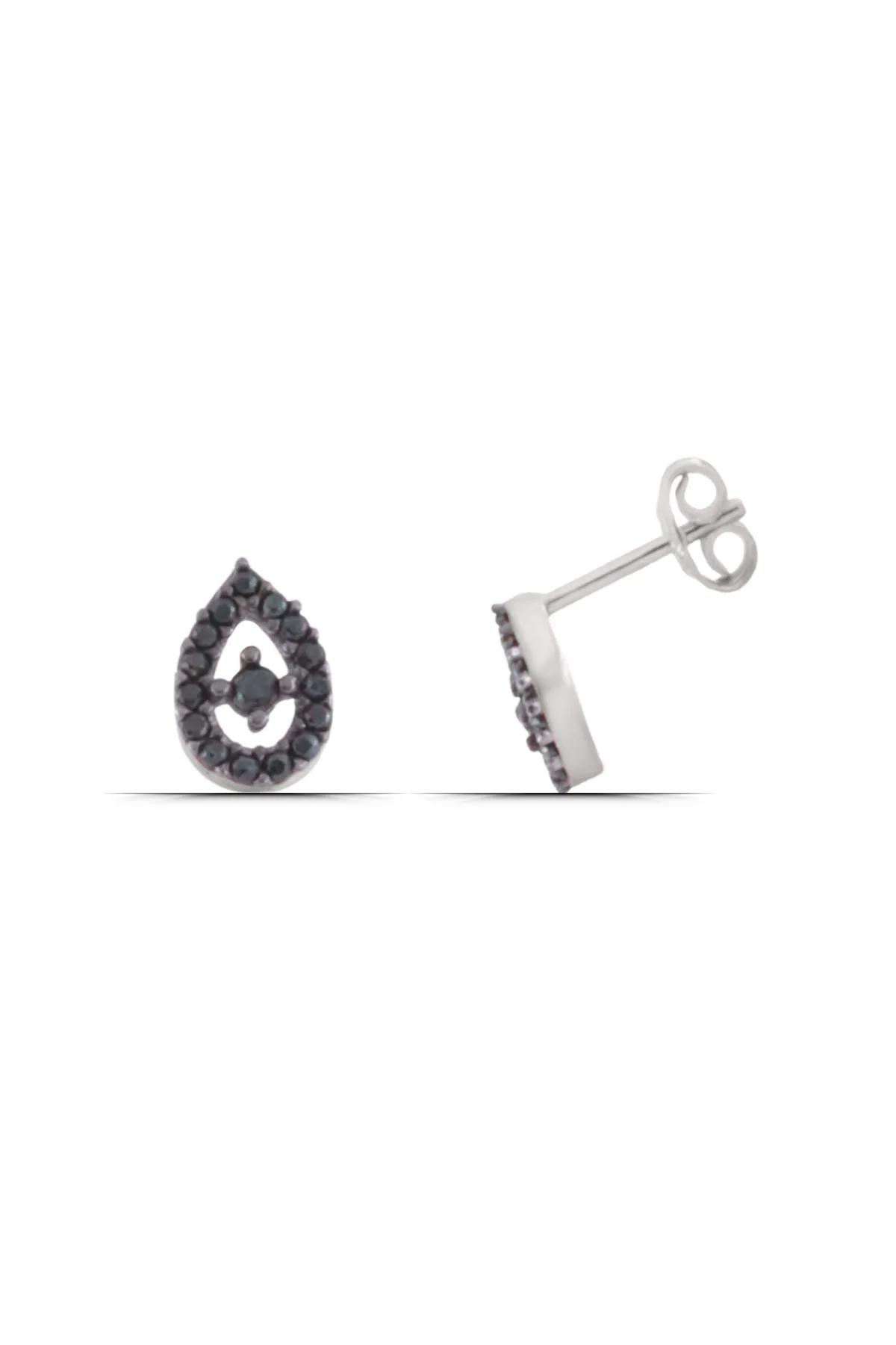 Siyah Zirkon Taşlı Kalem İşlemeli Damla 925 Ayar Gümüş Kadın Küpe