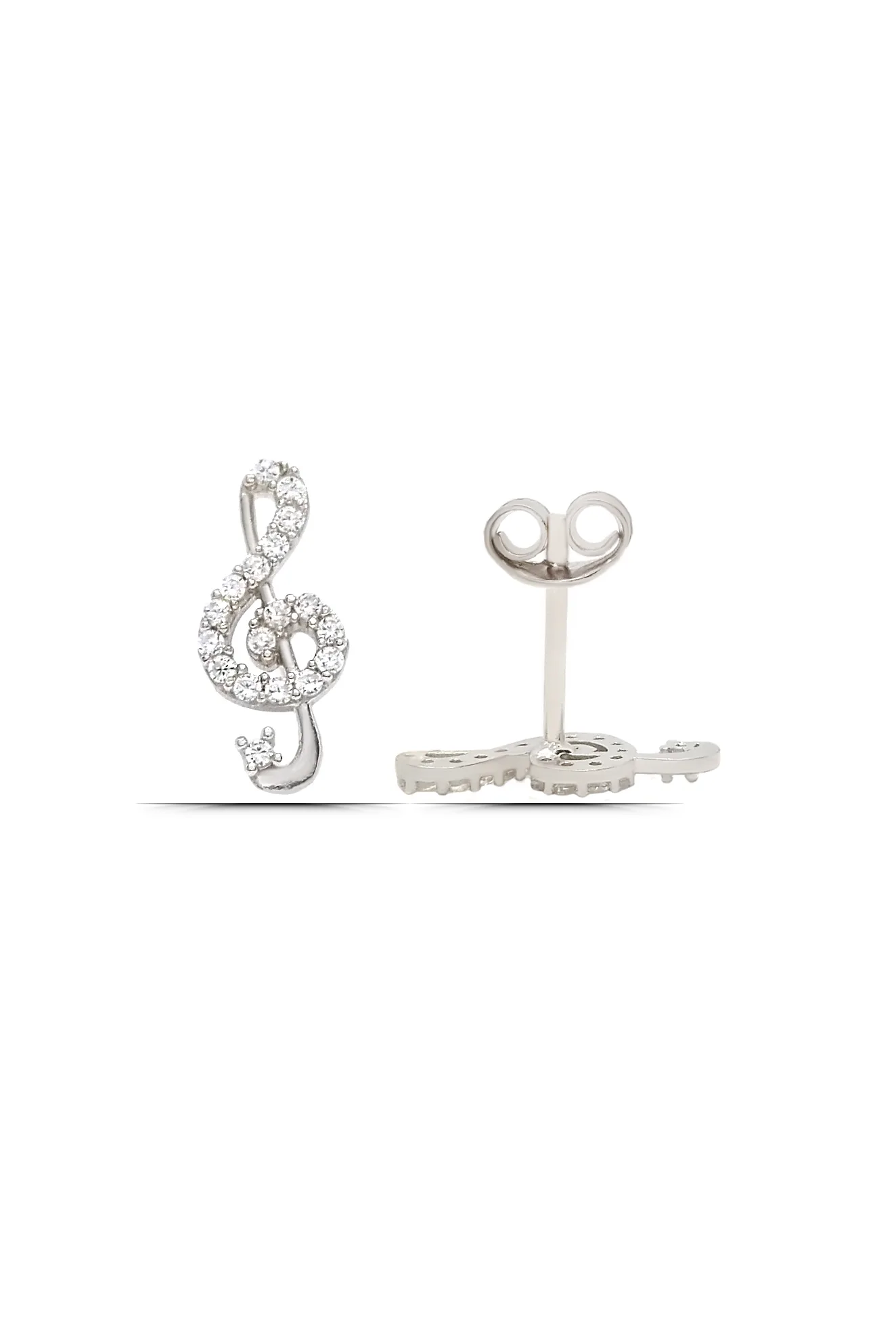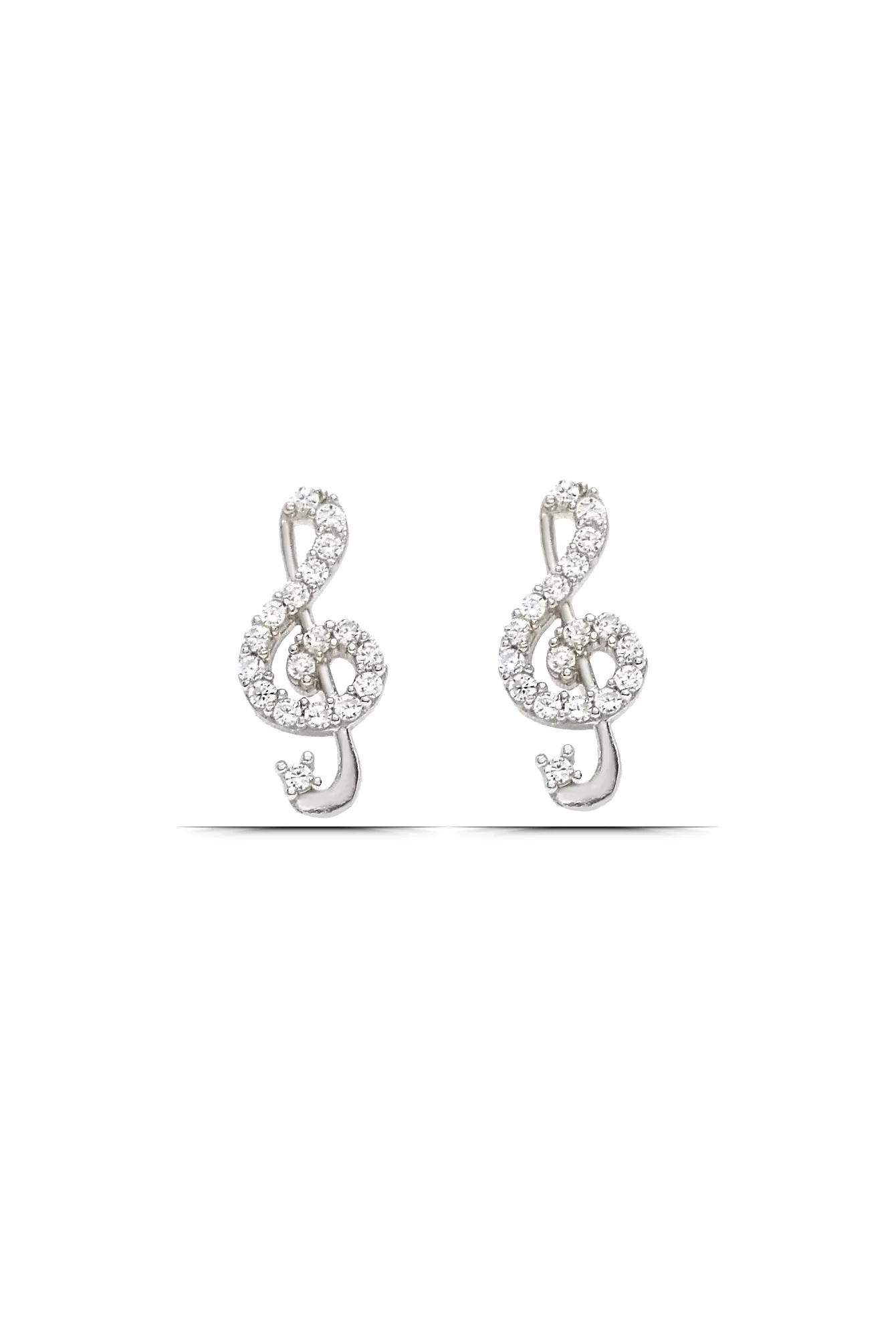 Sol Anahtar Nota Kadın 925 ayar Gümüş Küpe