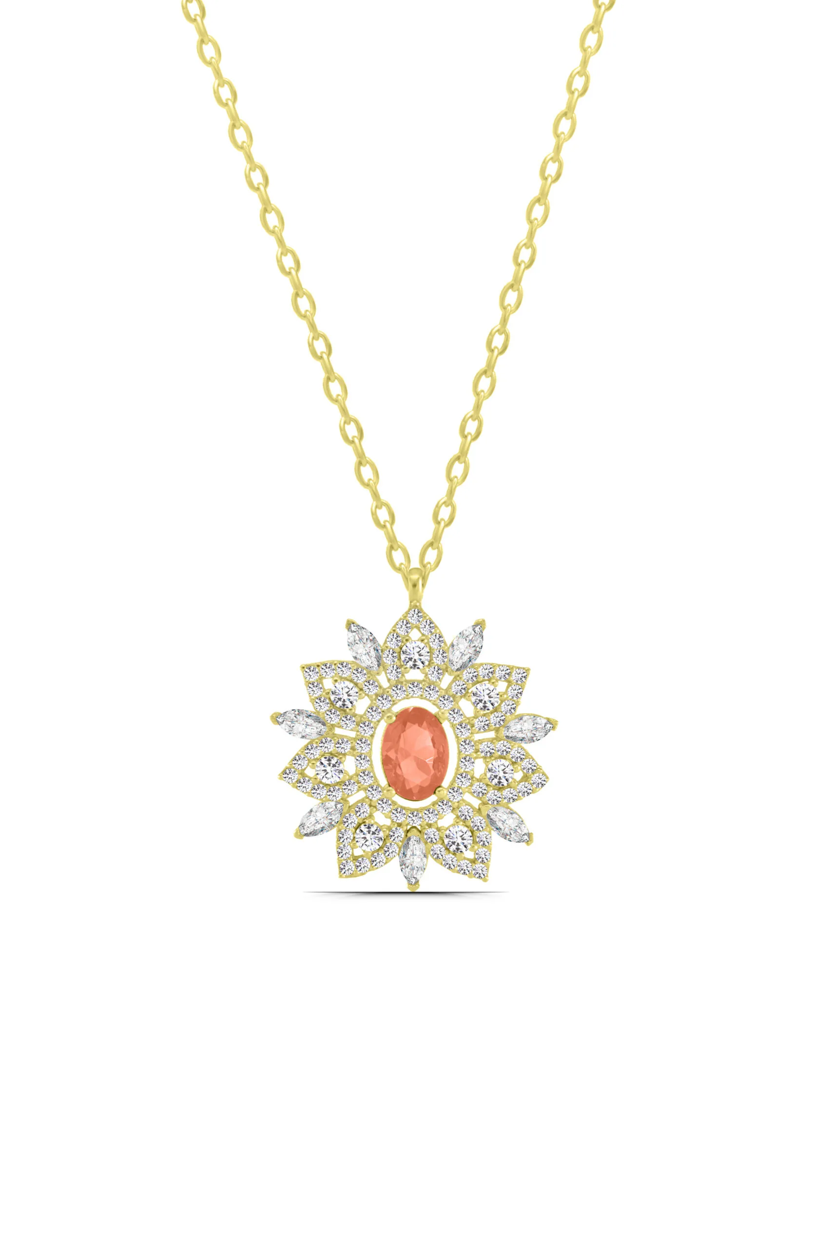 Sultan Nişanı Turuncu Montür Taşlı 925 Ayar Gümüş Kadın Kolye
