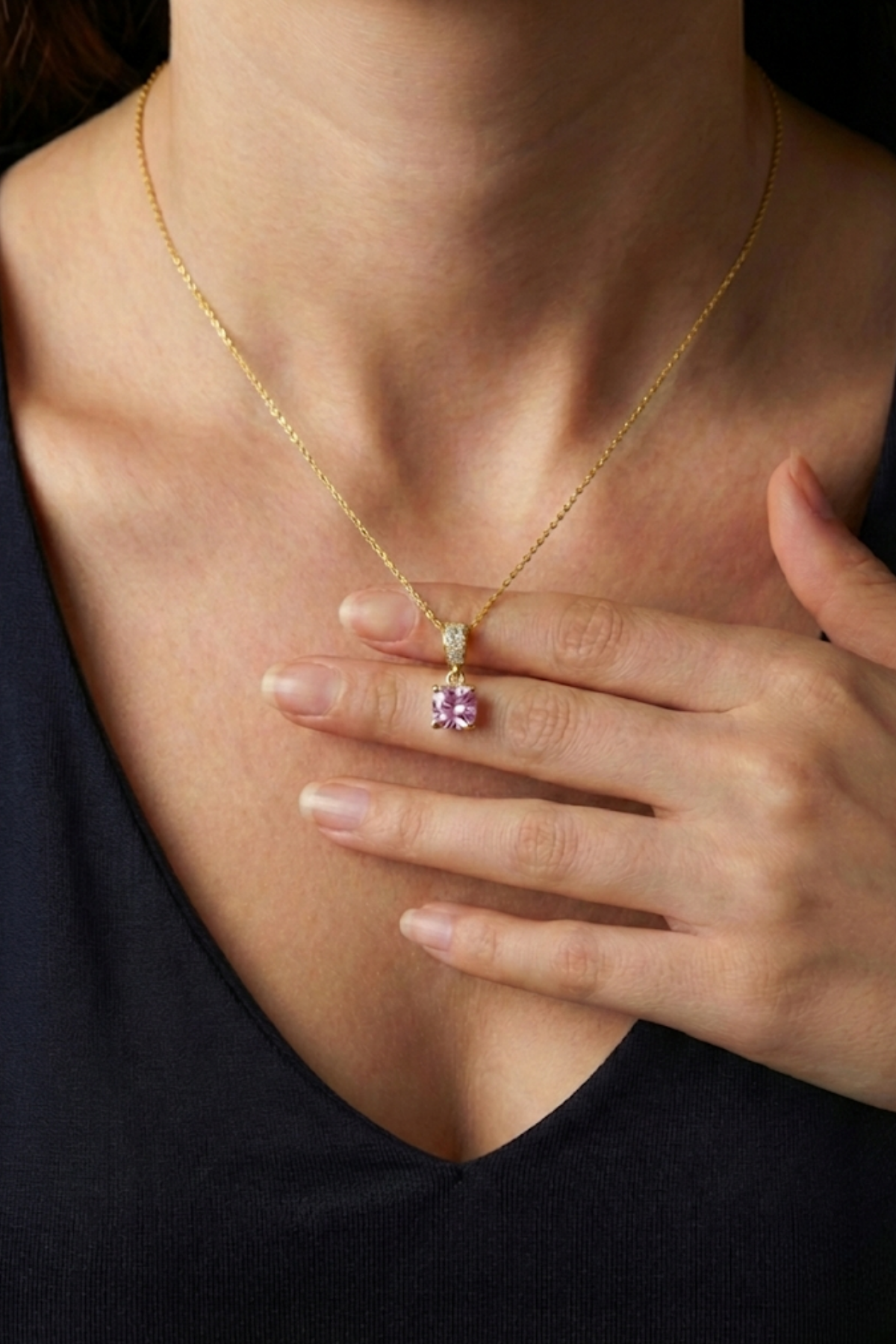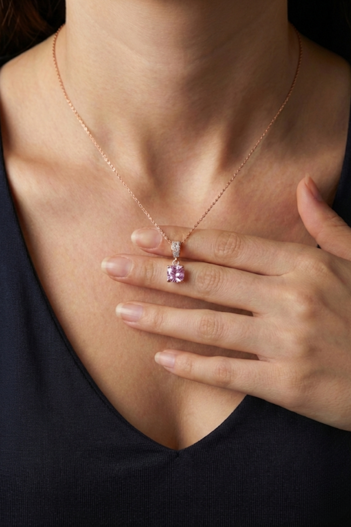 Zarif duruşu ve yumuşak renk tonuyla öne çıkan bu pembe zirkon taşlı tektaş kolye, minimal tasarımı seven kadınlar için sade ama etkileyici bir şıklık sunar. Kare kesim pembe zirkon taş, ışığı dengeli şekilde yansıtarak boyun hattında net ve feminen bir odak noktası oluşturur. İnce zinciri ve sade montürü sayesinde kolye, günlük kombinlerde doğal bir zarafet sağlarken özel anlarda da şıklığı tamamlayan güçlü bir detay haline gelir.