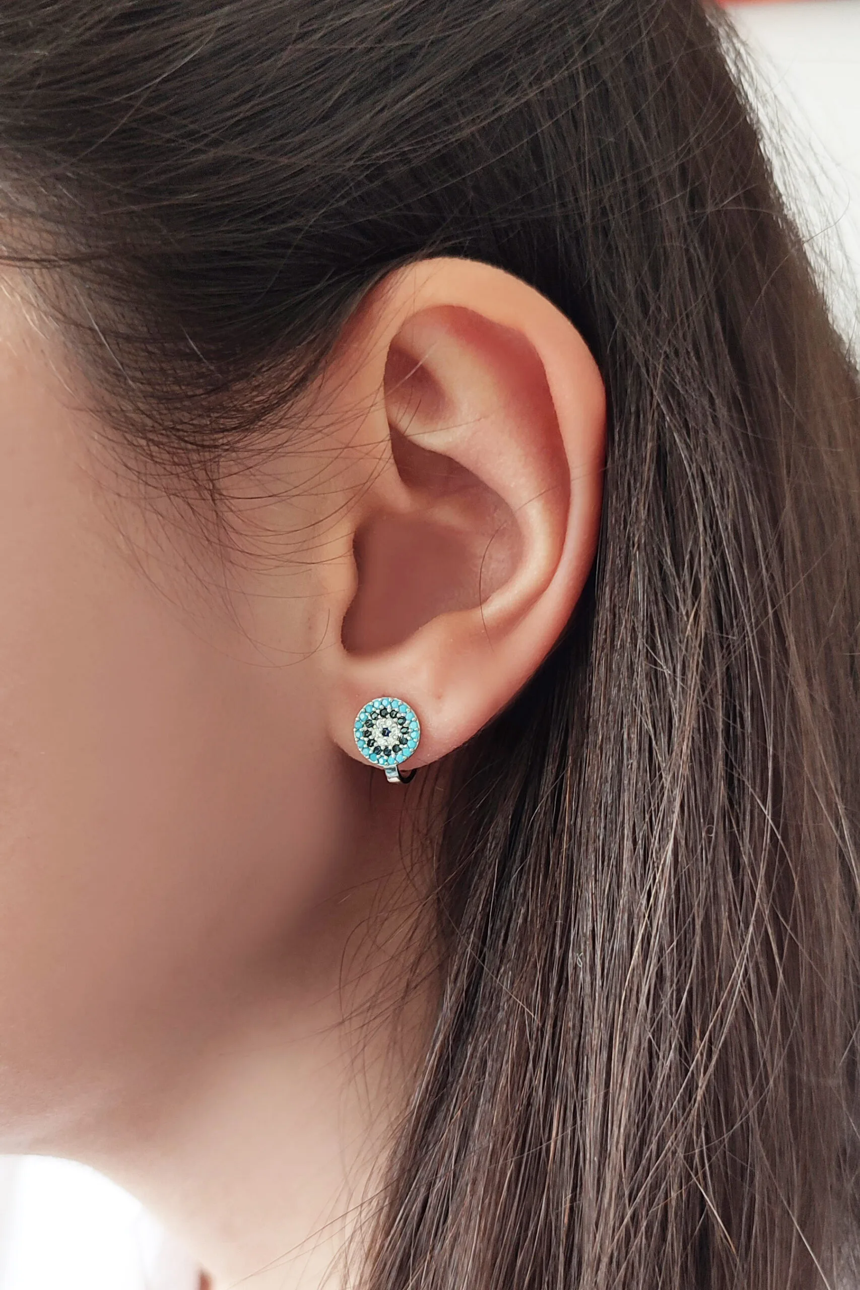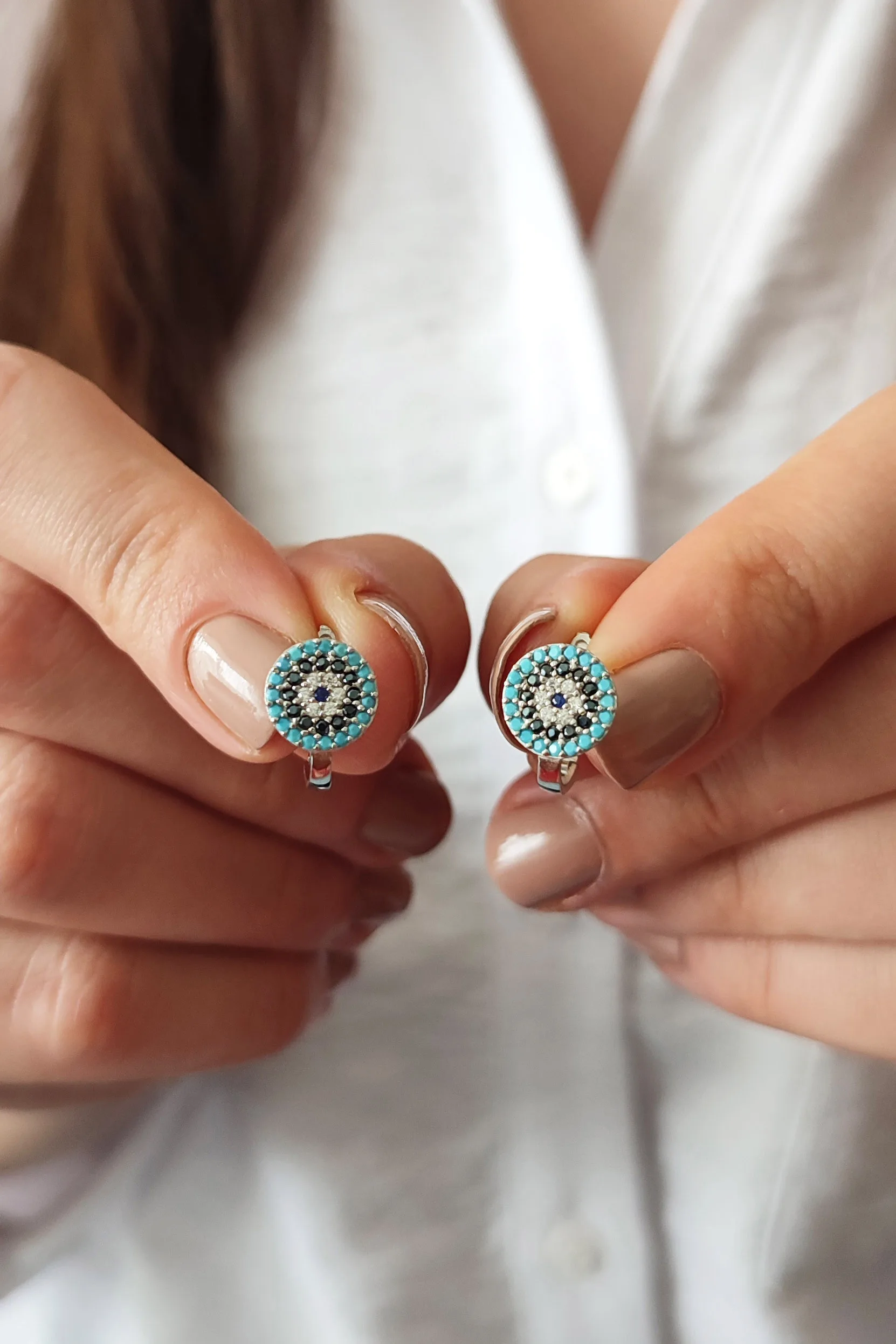 - Turkuaz Nazar İşlemeli 925 Ayar Gümüş Kadın Küpe