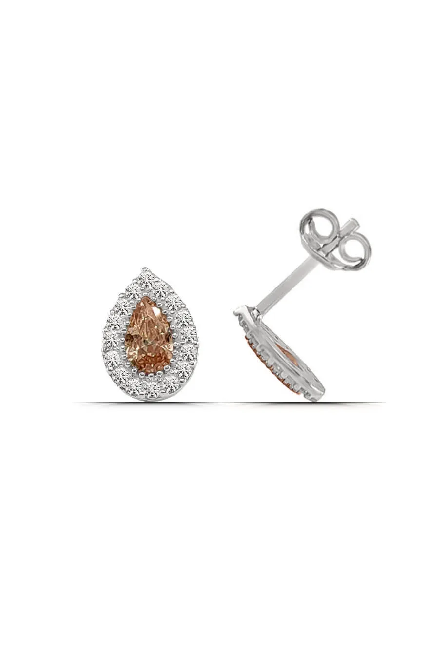 Turuncu Renk Damla Montür Taşlı 925 ayar Gümüş Rodyum Küpe