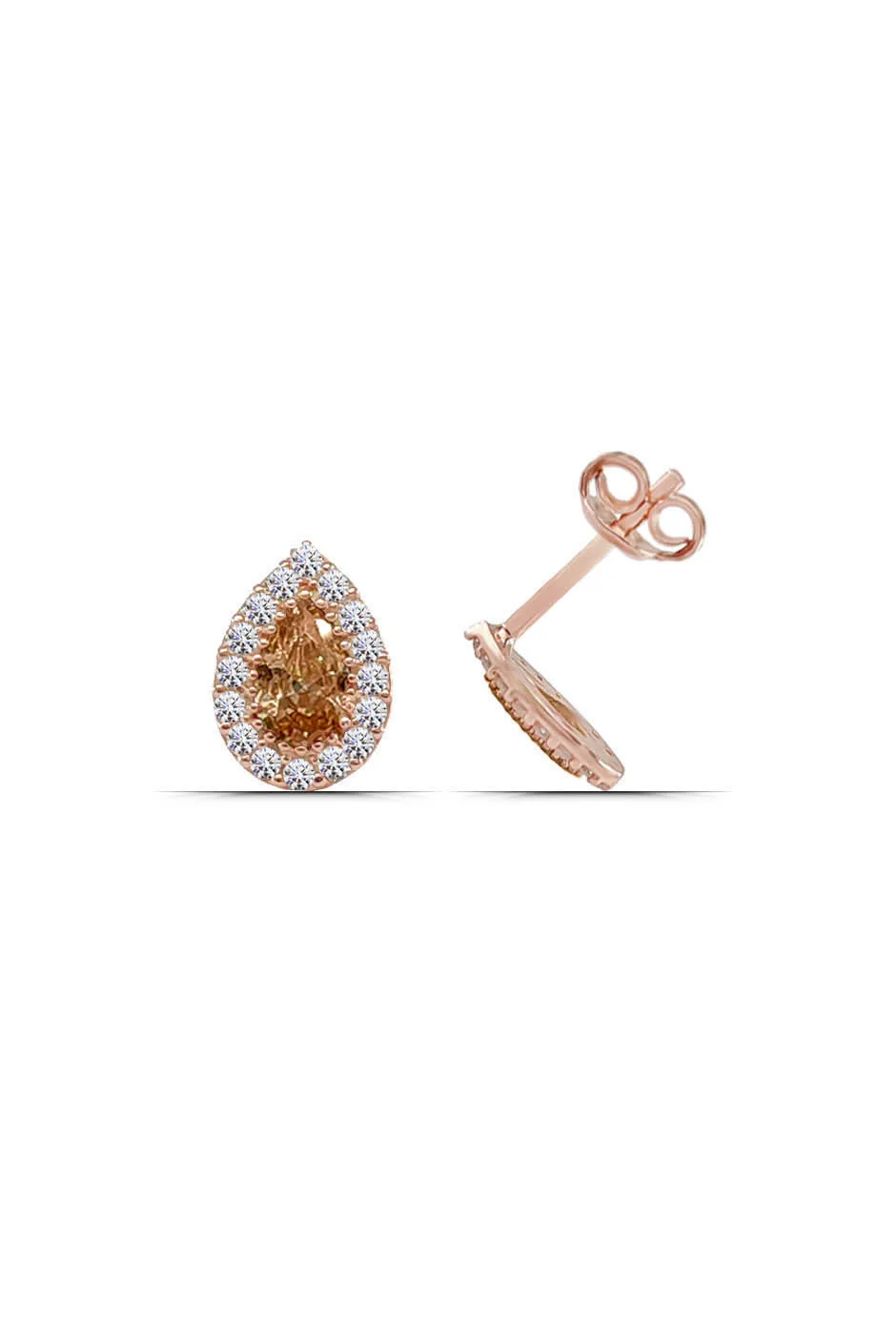 - Turuncu Renk Damla Montür Taşlı 925 ayar Gümüş Rose Küpe