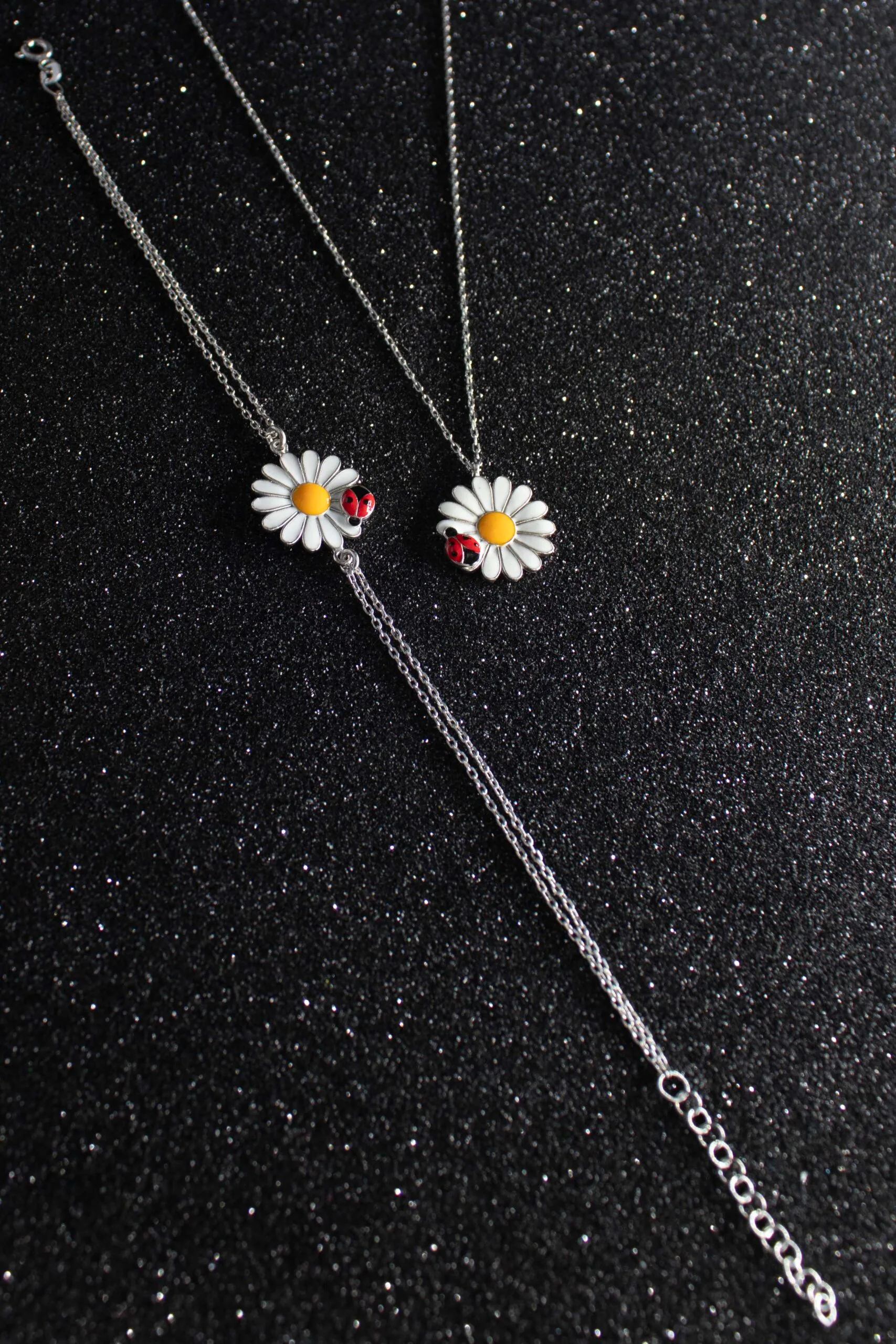 Uğur Böceği ve Papatya 925 Ayar Gümüş Kadın Set