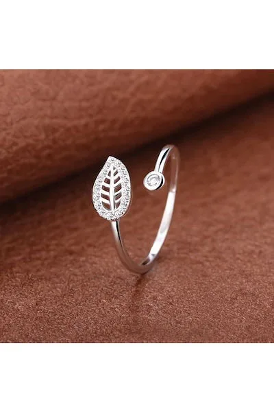 Yaprak Tasarım 925 Ayar Gümüş Kadın Ayarlanabilir Yüzük