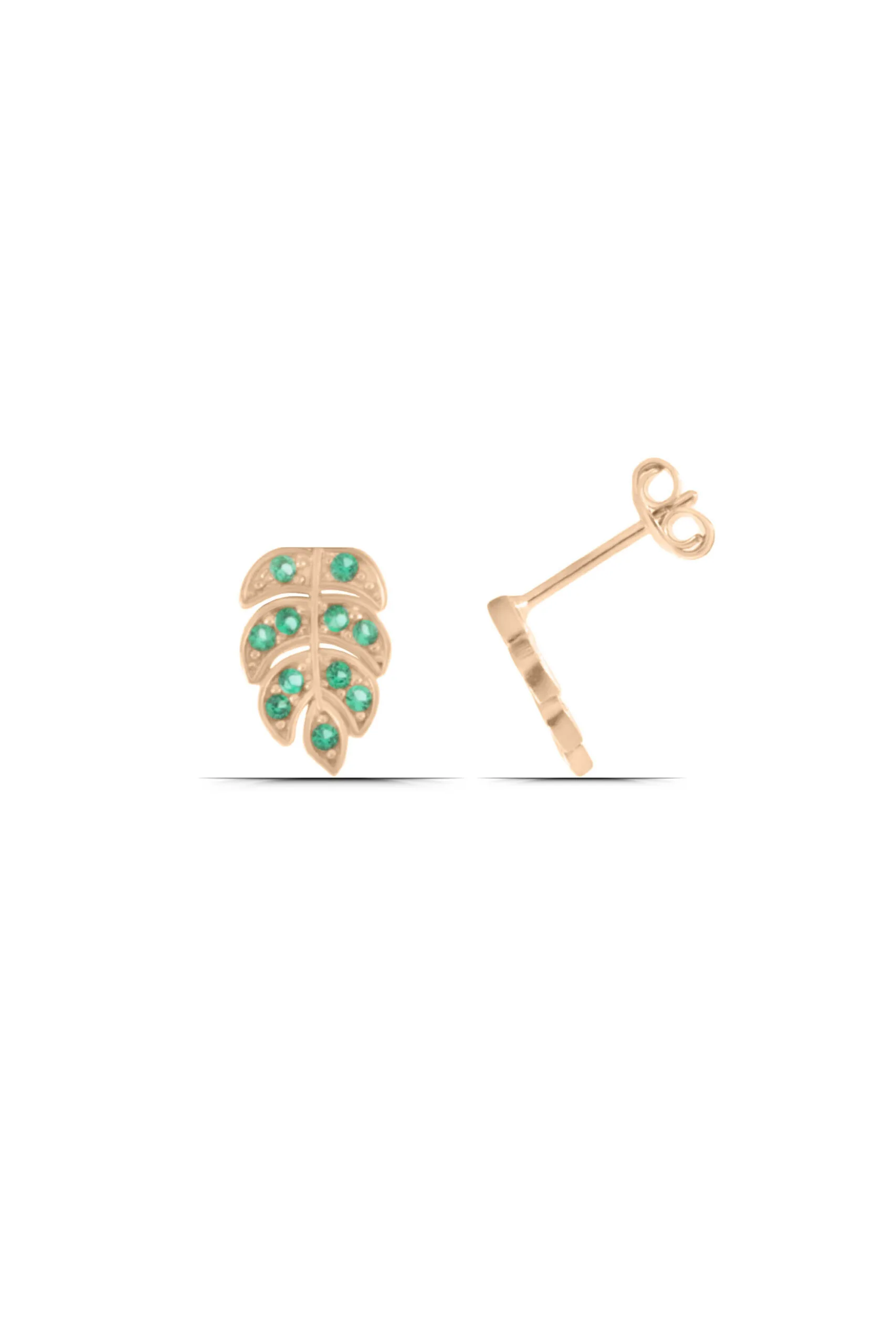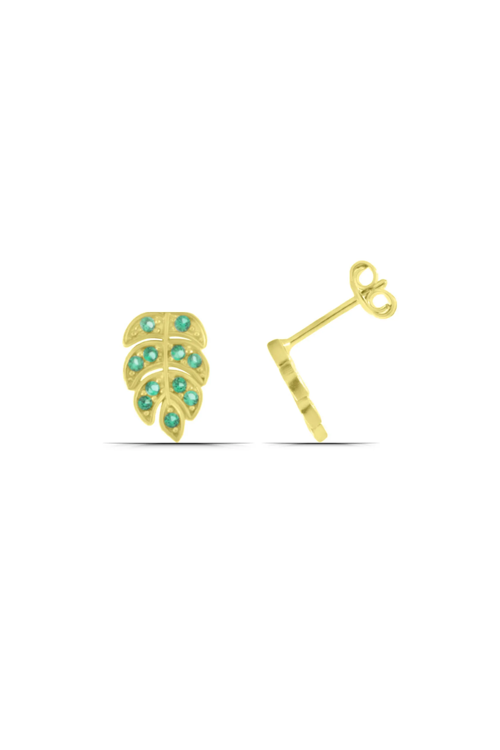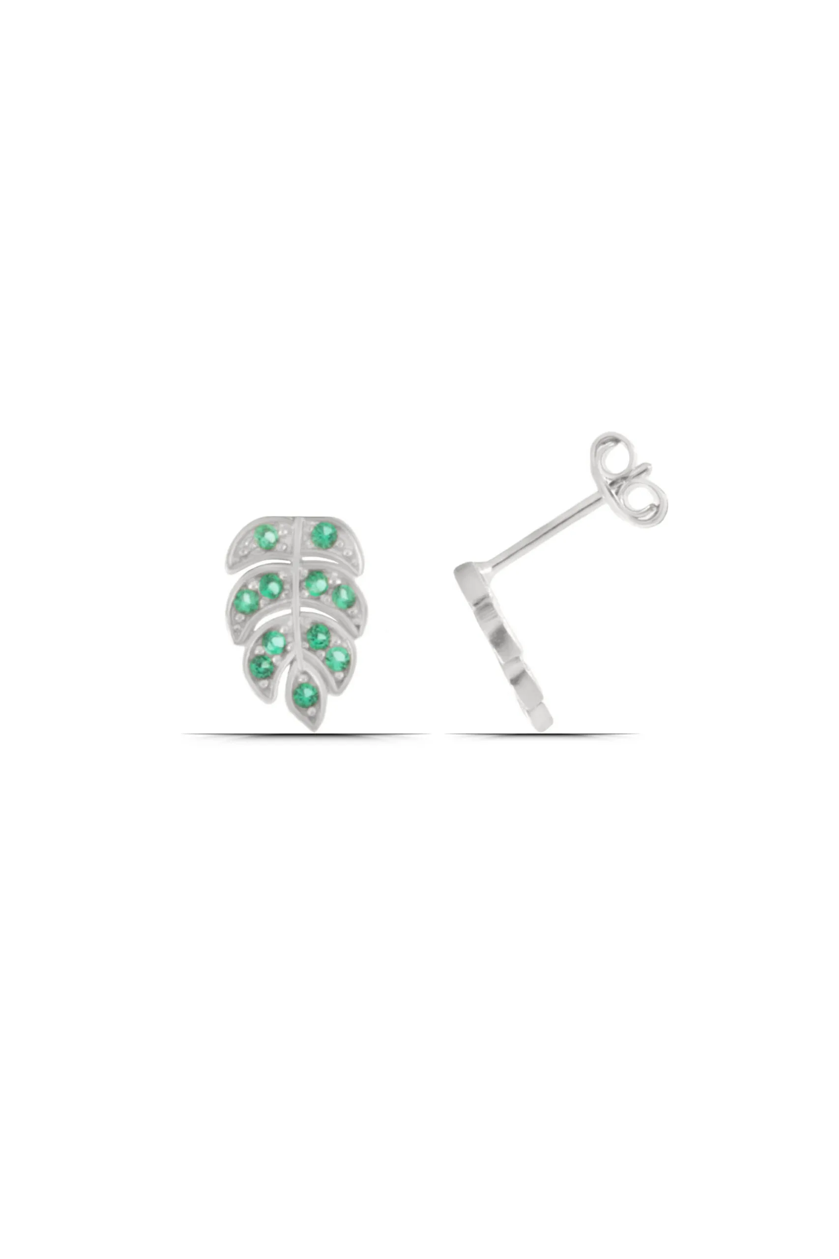 Yaprak Tasarım Yeşil Zirkon Taşlı 925 Ayar Gümüş Kadın Küpe
