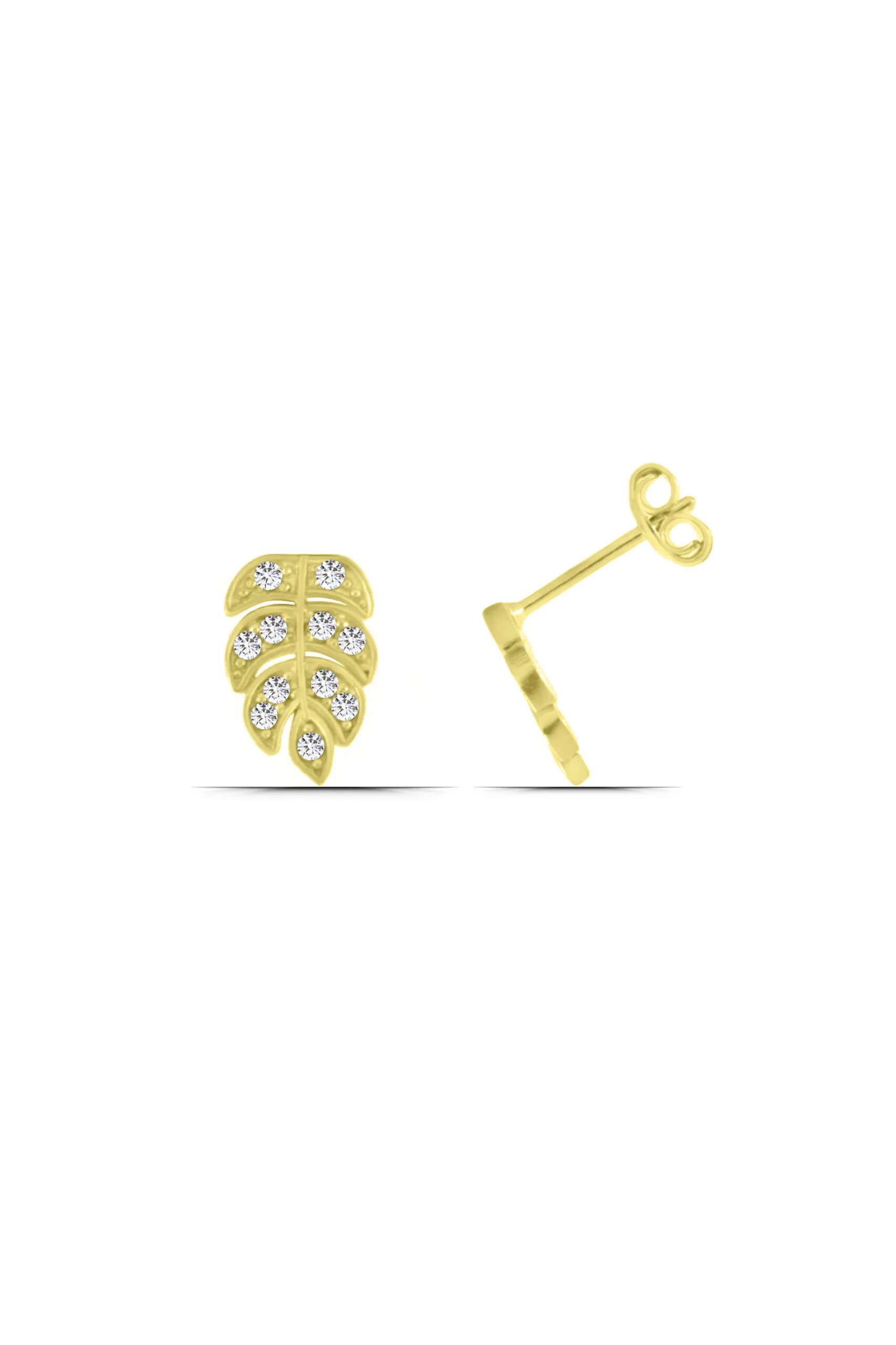 Yaprak Tasarım Zirkon Taşlı 925 Ayar Gümüş Kadın Küpe