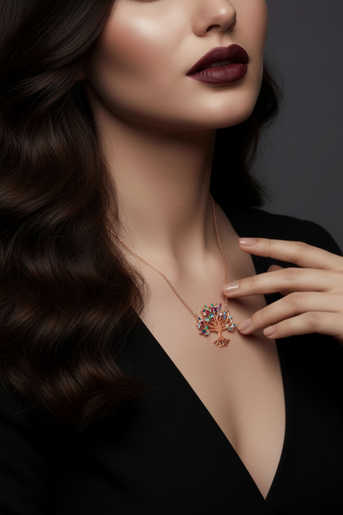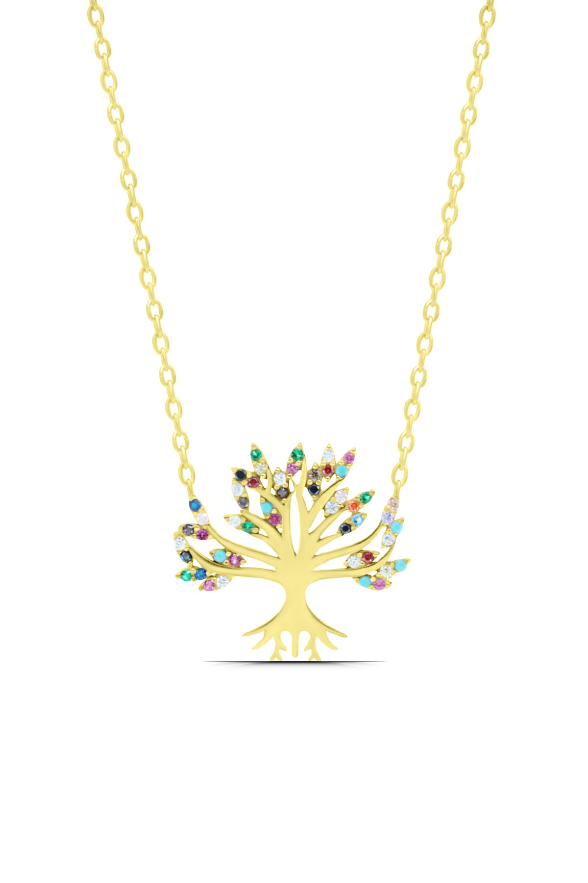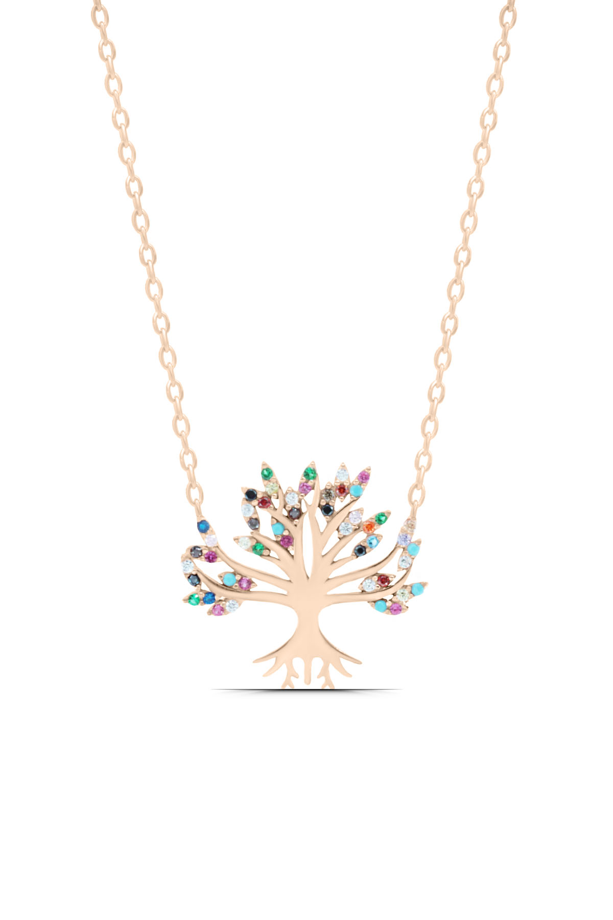 Yaşam Ağacı Mix Taşlı 925 Ayar Gümüş Kadın Kolye