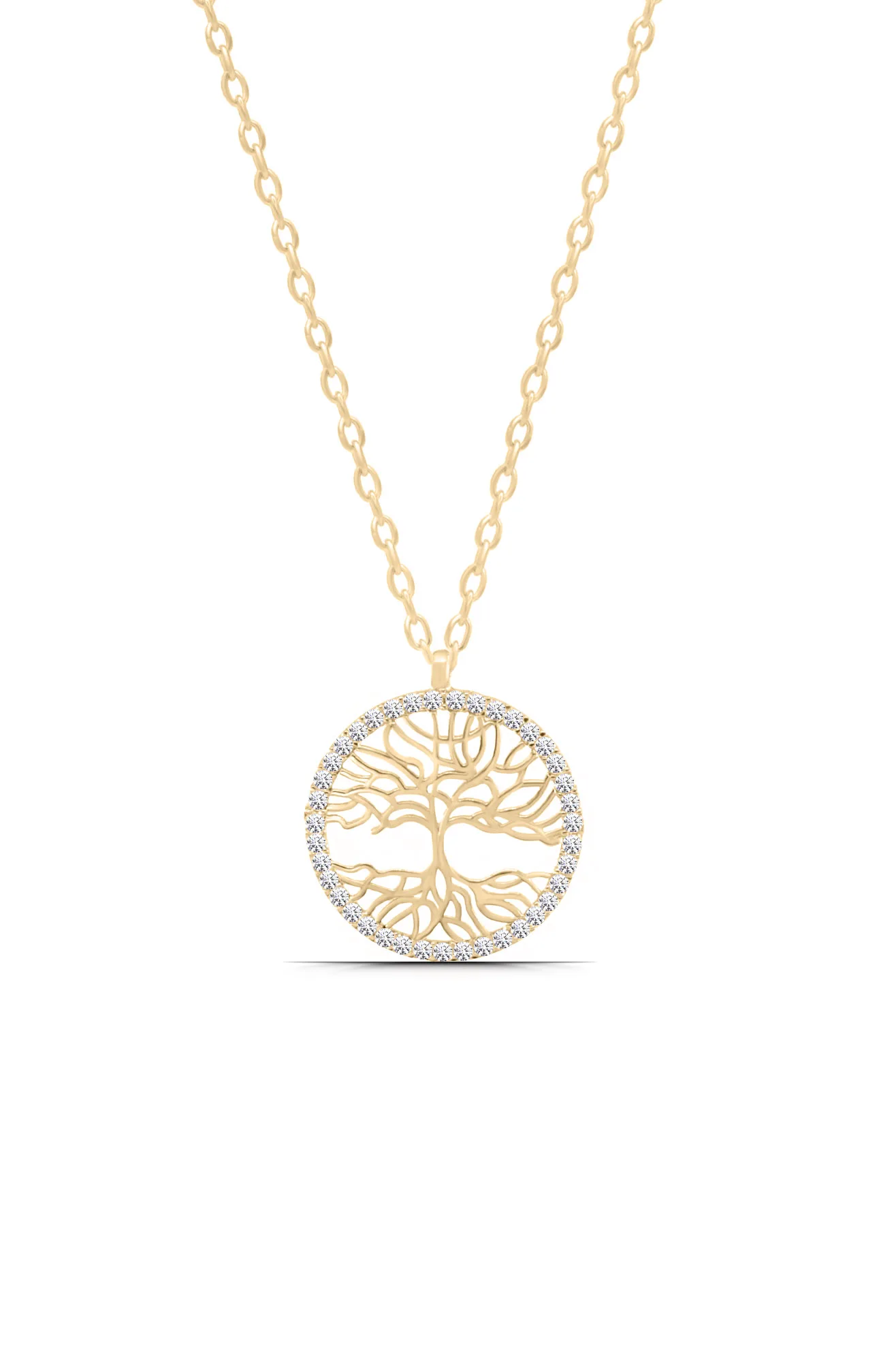 Yaşam Ağacı Zirkon Taşlı 925 Ayar Gümüş Kadın Kolye