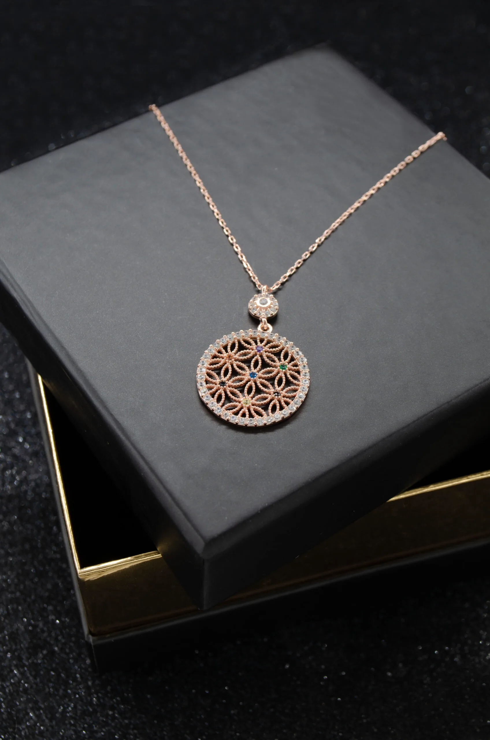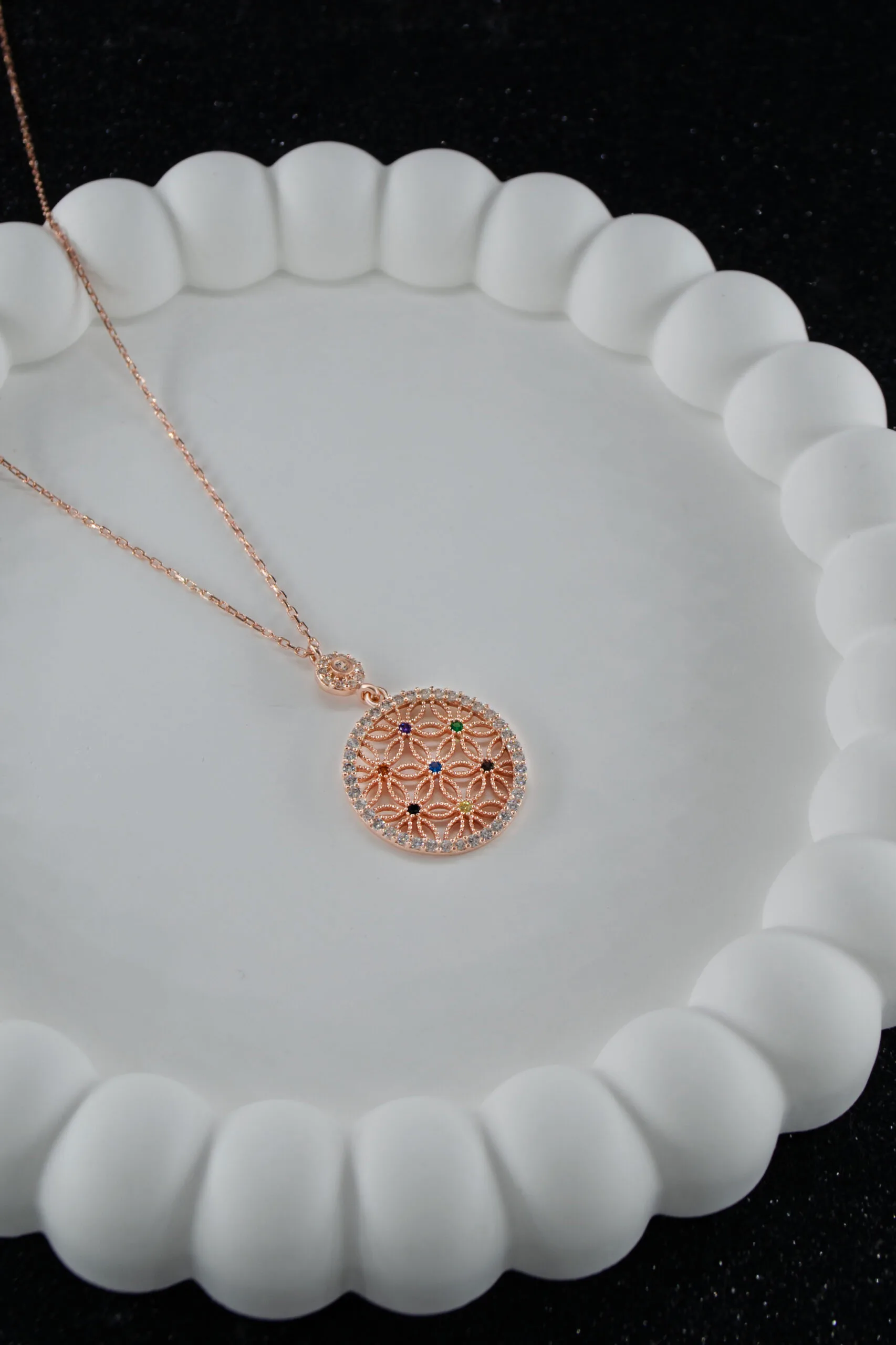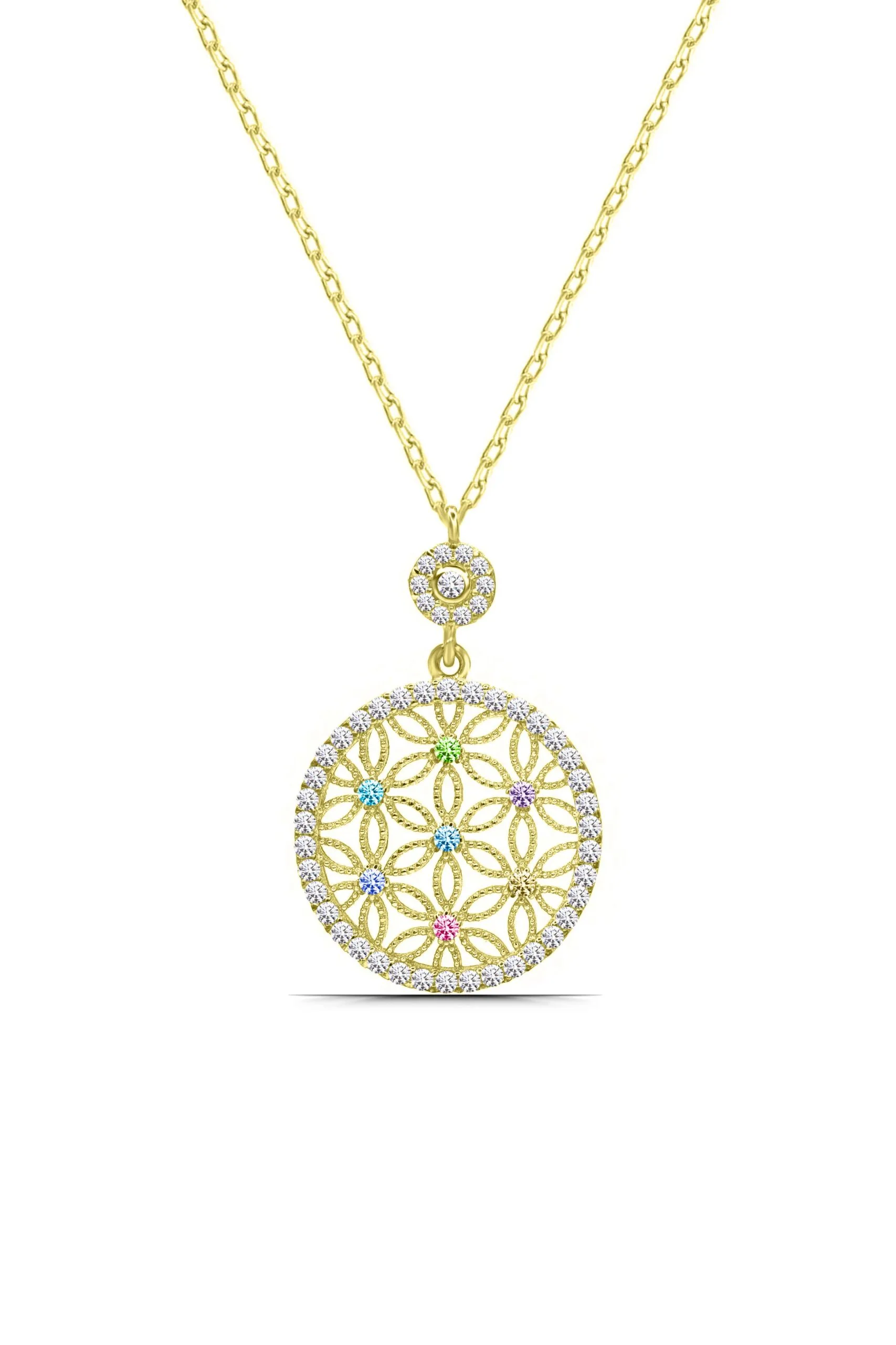 Yaşam Çiçeği Renkli Taşlı Kadın 925 Ayar Gümüş Kolye