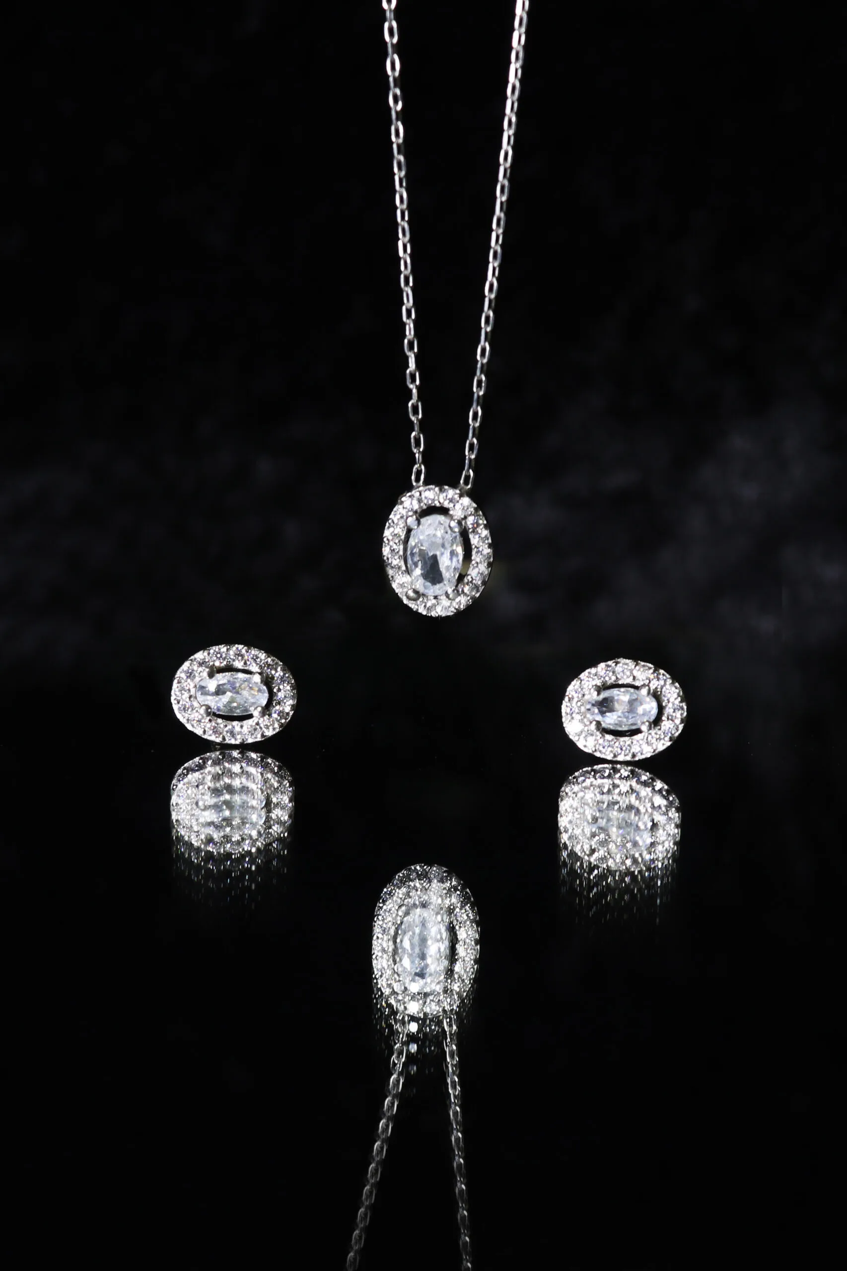 Zirkon Oval Tasarım 925 Ayar Gümüş Kadın Set
