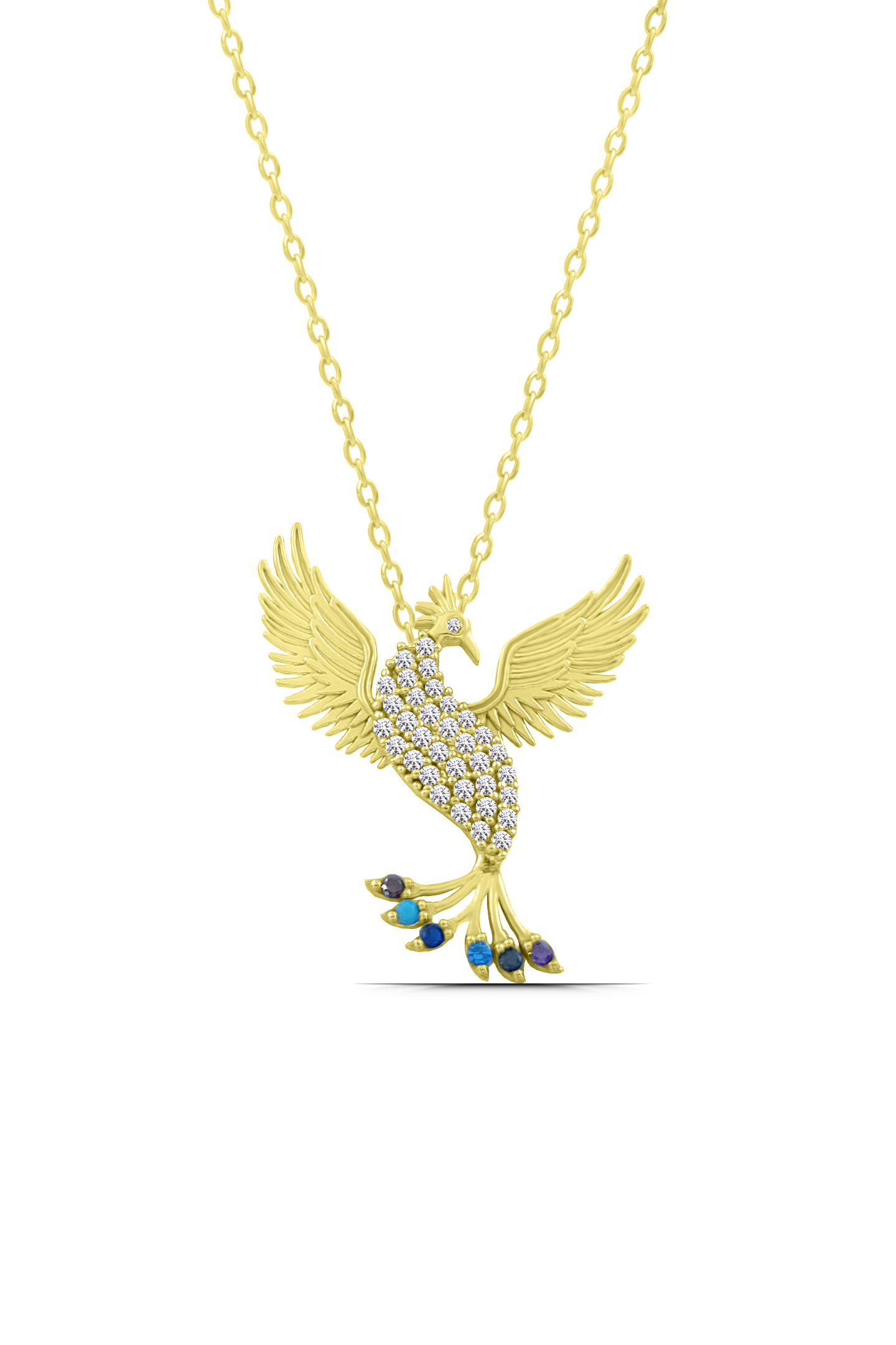 Zümrüdüanka Kuşu Kadın 925 Ayar Gümüş Altın Renk Kolye
